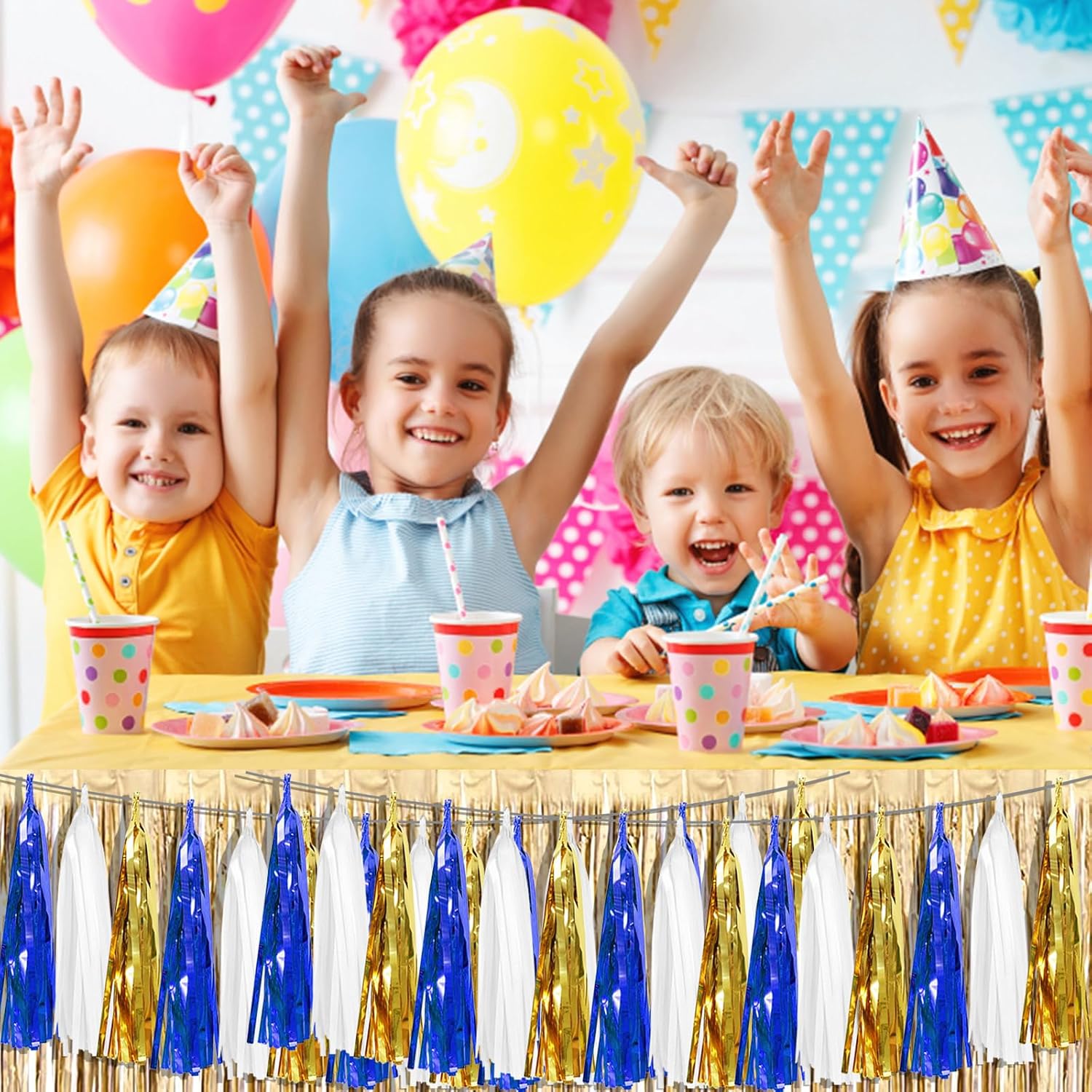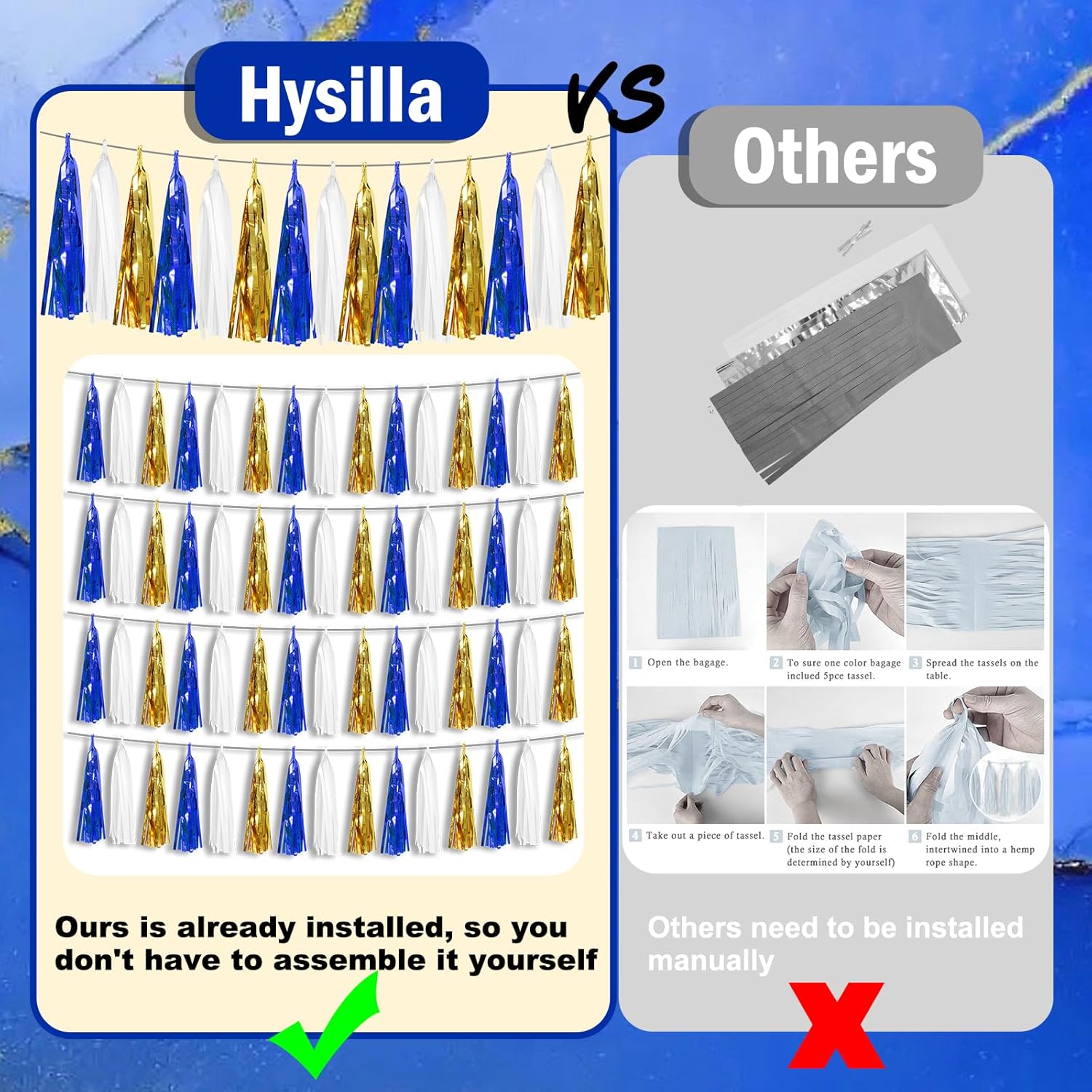 • 【Perfect Party Decoration】The navy blue white gold tinsel garlands are designed in a metallic Fringe, bright, and beautiful, at the same time, they shine in the sun, and these gorgeous tassel garlands create a wonderful backdrop or centerpiece for your party space. and bring you, your family, and your friend's good Visual effects. your party many emotional and touching moments where a lot of pictures will be taken and everybody will have a wonderful time together.