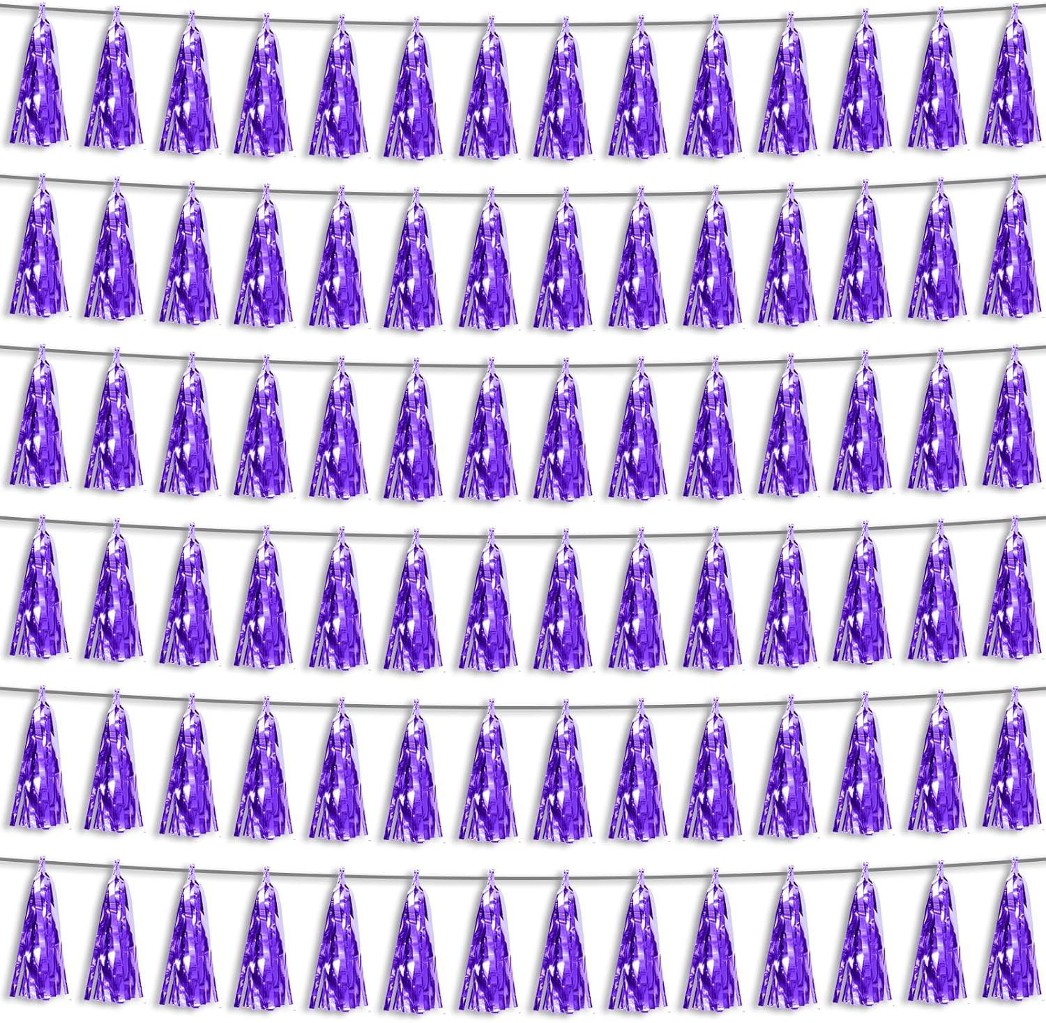6P Purple Foil Fringe Metallic Tassel Streamers Banner Tassel Garland for Parade Floats, Bachelorette, Wedding, Birthday, Graduation, Christmas, Bridal/Baby Shower Party Decorations