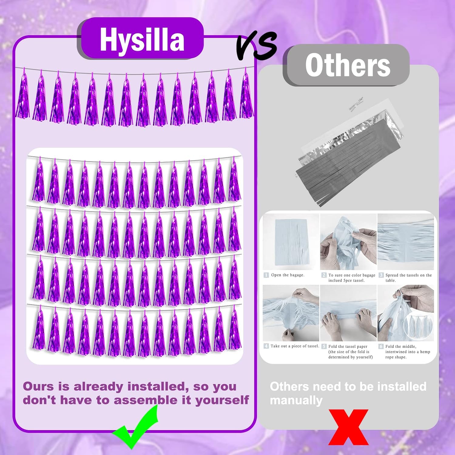 • 【Perfect Party Decoration】The purple tinsel garlands are designed in a metallic Fringe, bright, and beautiful, at the same time, they shine in the sun, and these gorgeous tassel garlands create a wonderful backdrop or centerpiece for your party space. and bring you, your family, and your friend's good Visual effects. your party many emotional and touching moments where a lot of pictures will be taken and everybody will have a wonderful time together.