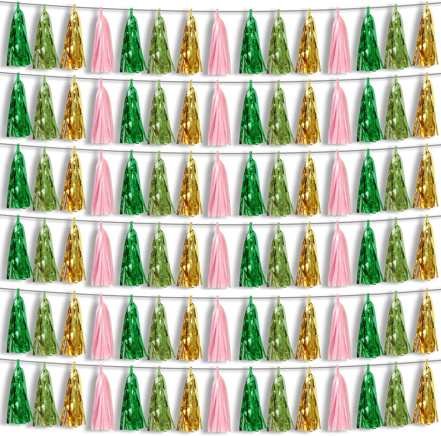 • 【Perfect Party Decoration】The sage green pink gold tinsel garlands are designed in a metallic Fringe, bright, and beautiful, at the same time, they shine in the sun, and these gorgeous tassel garlands create a wonderful backdrop or centerpiece for your party space. and bring you, your family, and your friend's good Visual effects. your party many emotional and touching moments where a lot of pictures will be taken and everybody will have a wonderful time together.
