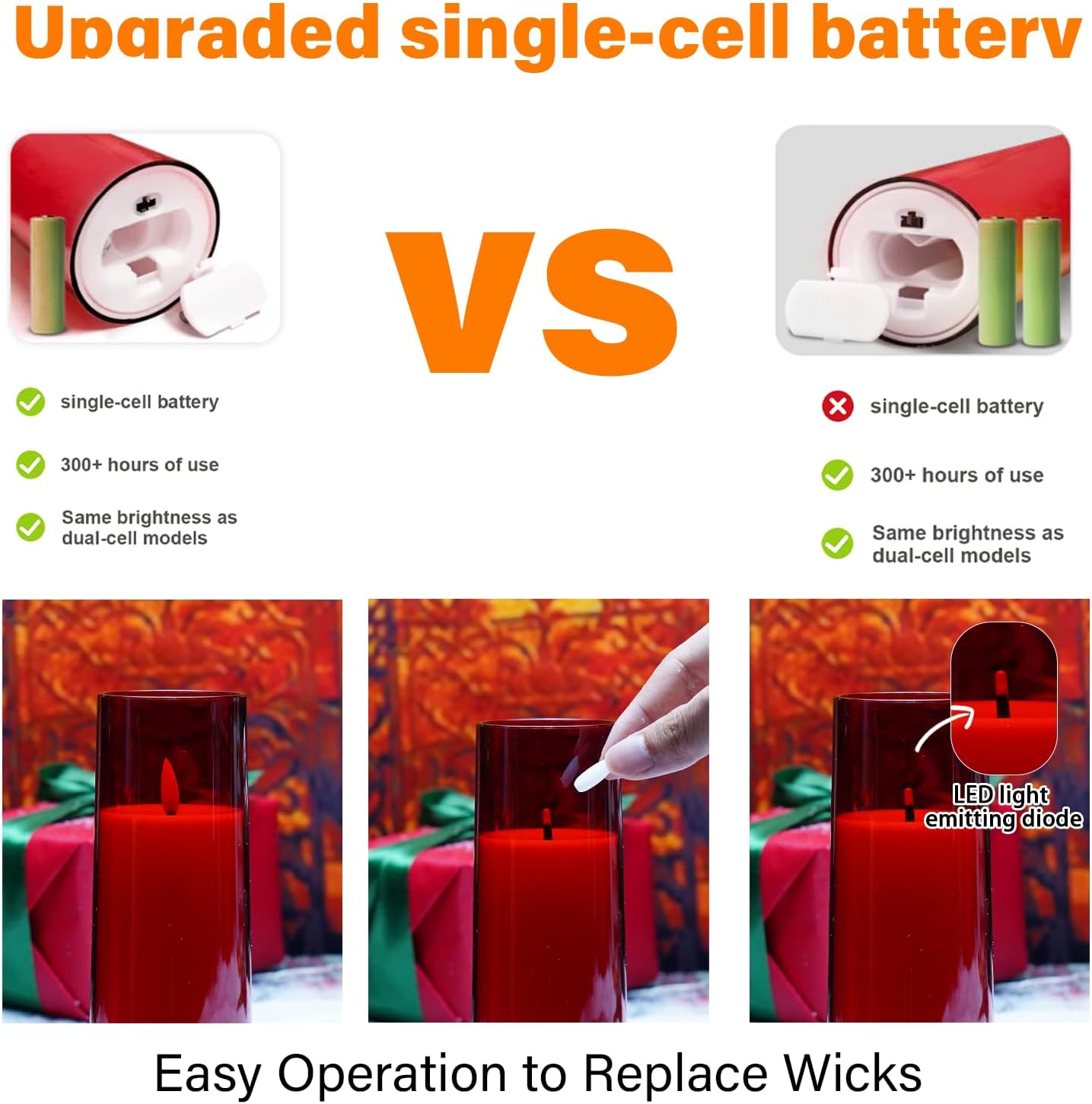 • UPGRADED VERSION - SINGLE BATTERY:Introducing our flameless candles with an advanced battery technology that lasts over 300 hours on just one single battery! That's right, unlike other brands that require two batteries, our candles are powered by only one battery without compromising on brightness. Not only is this energy-saving feature practical and convenient, but it also makes our candles a cost-effective choice.Per battery candle is powered by 1 x AA batteries (Not included).