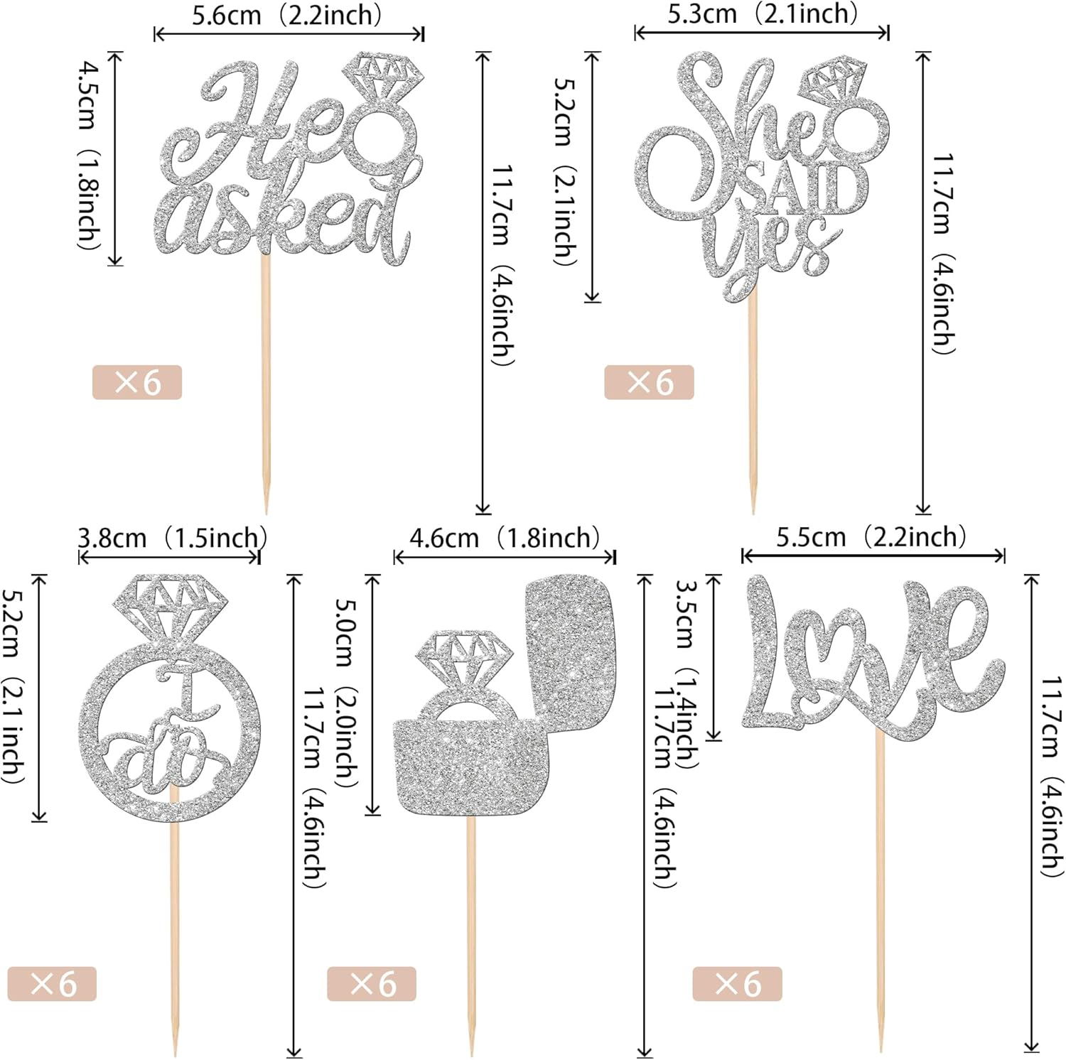 • Wide Usages ! These cupcake toppers are perfect for wedding engagement theme party, bridal shower theme party, he asked she said yes theme party cupcake decorations , they can make your cupcake more attractive and bring the fun to your party.You can also apply them for ice cream, fruits, cookies and other desserts.