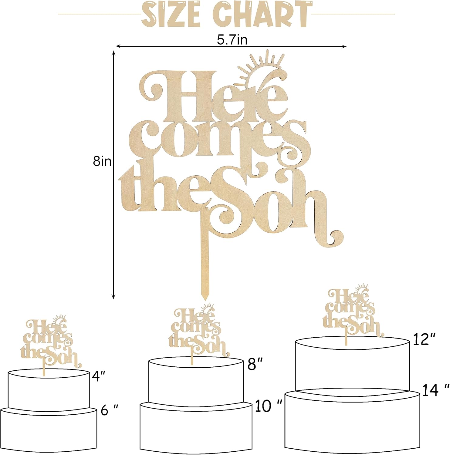 Here Comes the Son Cake Topper - Baby shower for Wooden Party Decor,Boho Photo Booth Props,Summer Sea Theme Birthday Party Surprise Decorations,You Are My Sunshine Cake Topper (Here Comes the Son)
