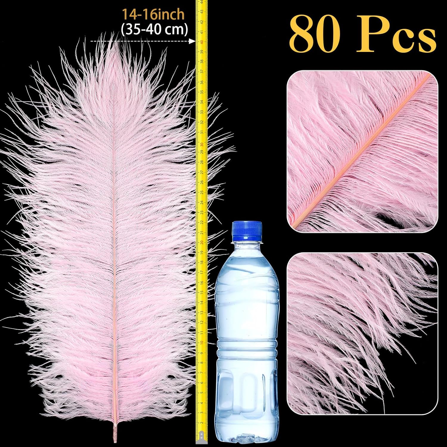 • Meet Using Needs: you will receive 80 pieces of ostrich feathers bulk in light pink color about 14-16 inches/ 35-40 cm, sufficient quantity and large size can meet your decorating and crafting needs in daily life