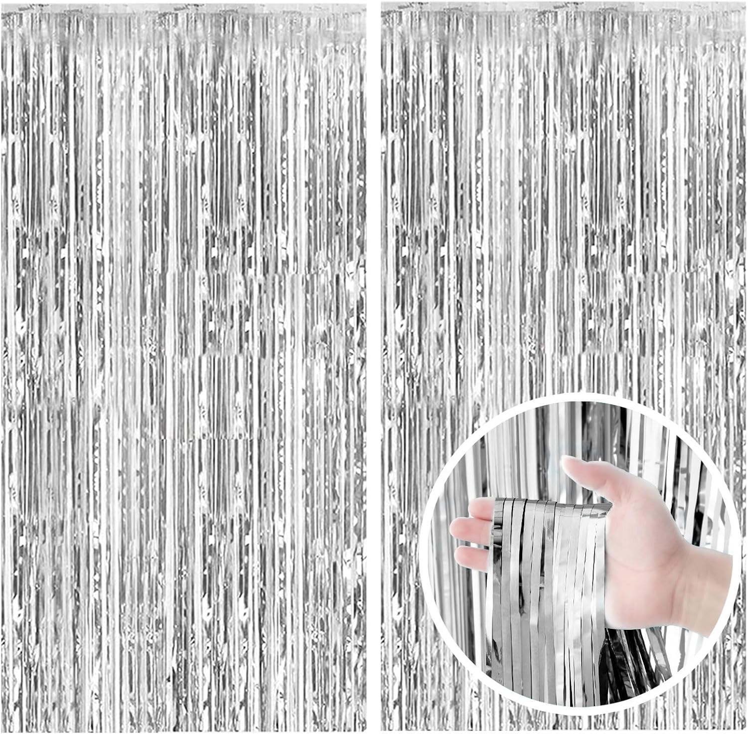 2 Pack Silver Backdrop Curtain Party Decorations Foil Fringe Backdrop Silver Tinsel Streamers Birthday Bachelorette New Year Christmas Wedding Baby Shower Disco Party Decorations