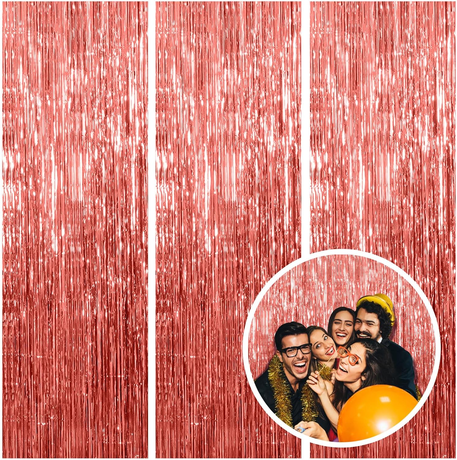 Rose Gold Party Decor 3 Pack - Bachelorette & Birthday Backdrop - Foil Fringe Tinsel Streamers - Christmas, Graduation & Baby Shower Party Decorations