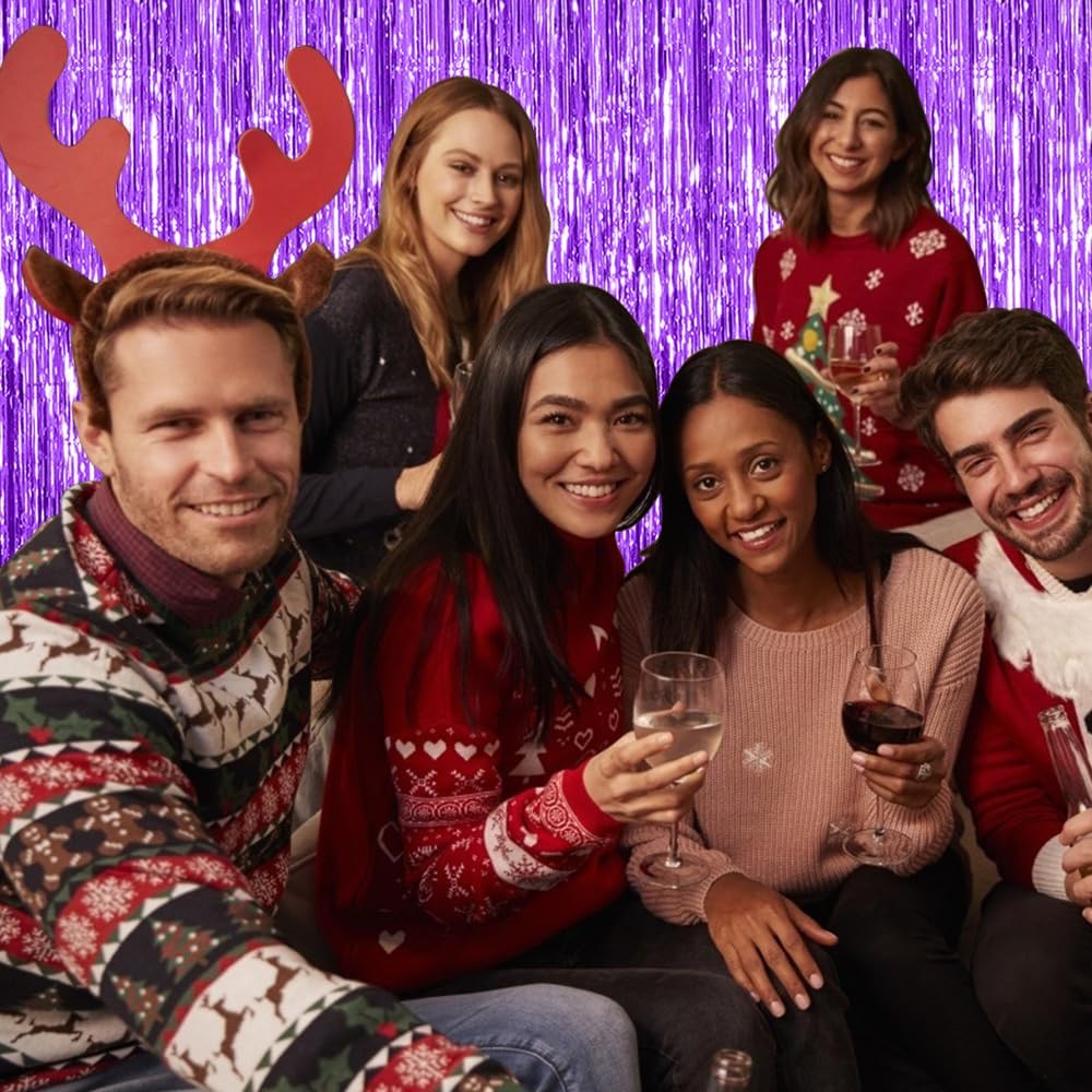 3 Pack Purple Streamers Backdrop Curtain Halloween Party Decorations Purple Tinsel Foil Fringe Backdrop Birthday Graduation Bachelorette Christmas New Year Themed Party Decorations