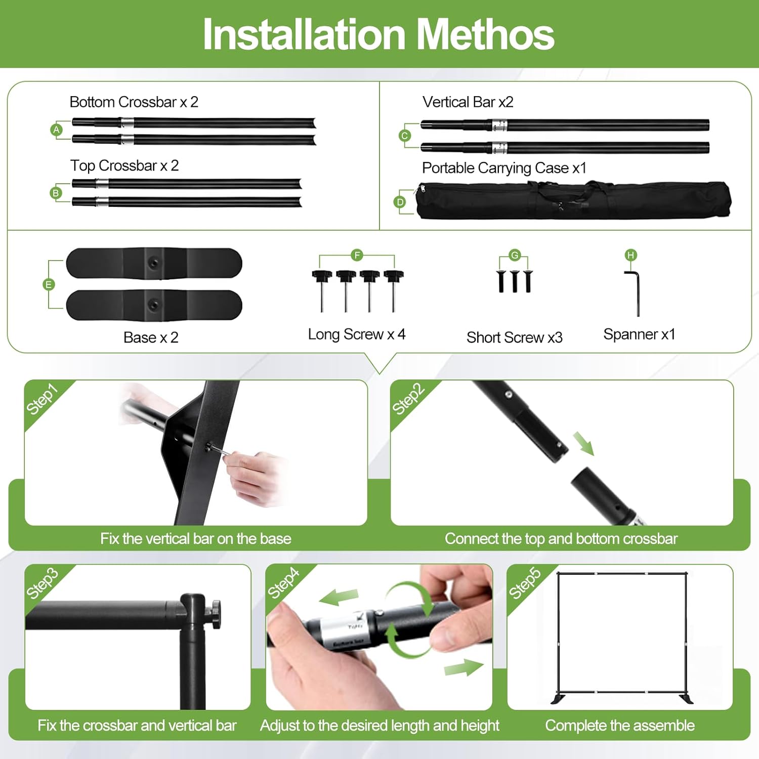 • 【Upgraded Professional Banner Stand】The backdrop banner stand is made of aluminum alloy, locking System Upgrade, the screw fastening connection of the crossbar adopts a widened design to prevent the middle of the cross bar from sagging. More stable than ordinary support bar.