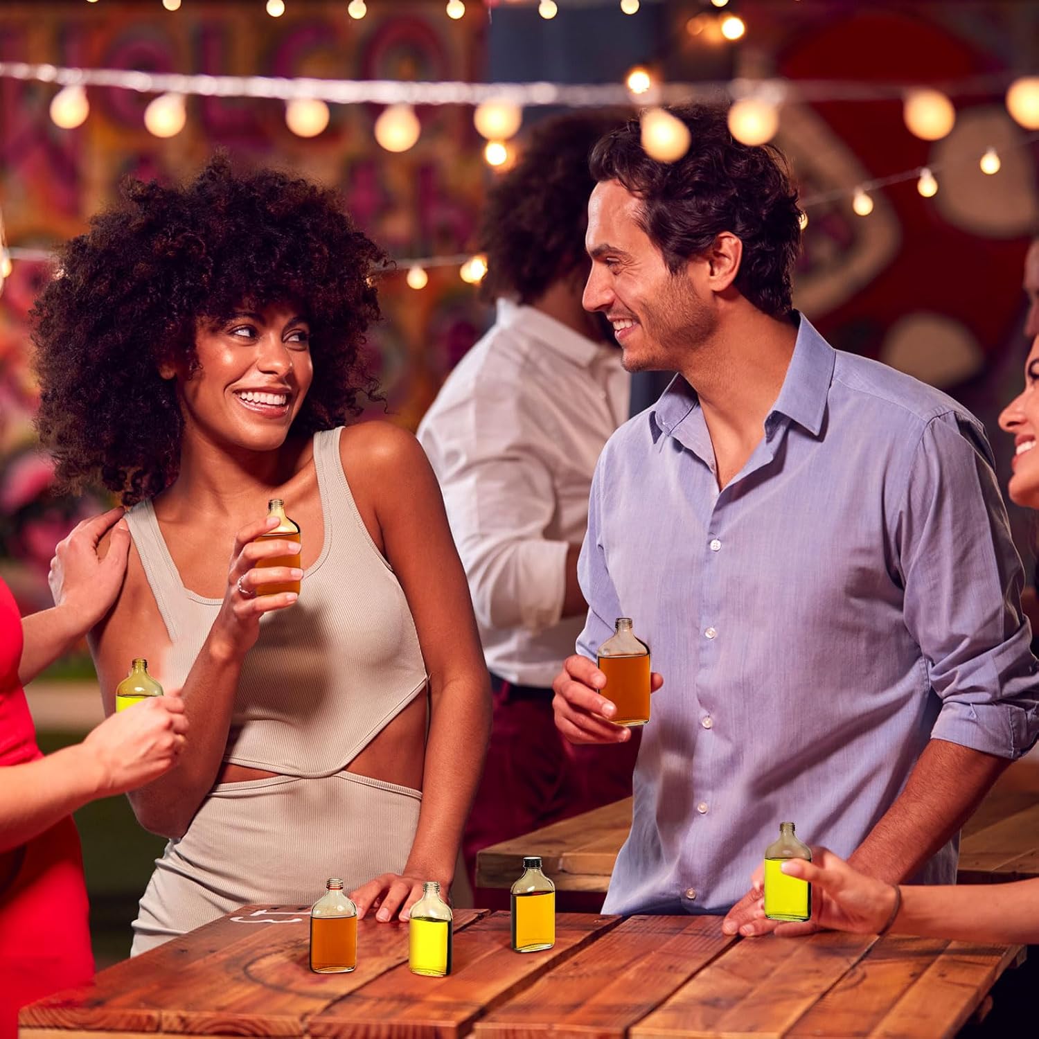• Reasonable Capacity: each mini shot bottle measures 10.6 cm/ 4.17 inch in height, the topper diameter is 2.3 cm/ 0.9 inch, the bottom is 5.2 cm/ 2.04 inch in diameter, and the capacity is 50 ml/ 1.7 oz, compact size is easy to meet your travel needs