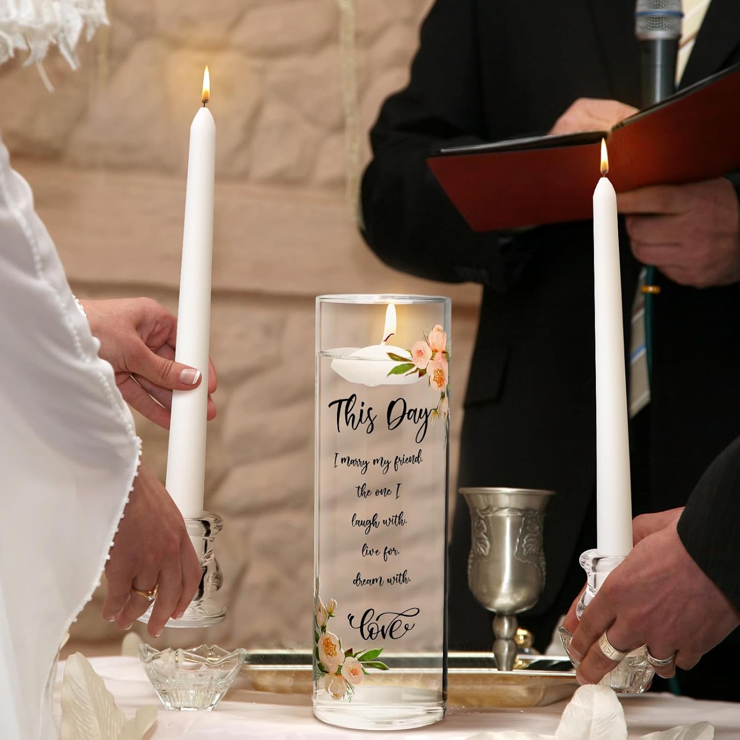 Irenare Unity Candles with Holder for Wedding Ceremony Wedding Decortions Accessories Glass Candle Holder Pillar Candle for Formal Events Church(Fresh Style)