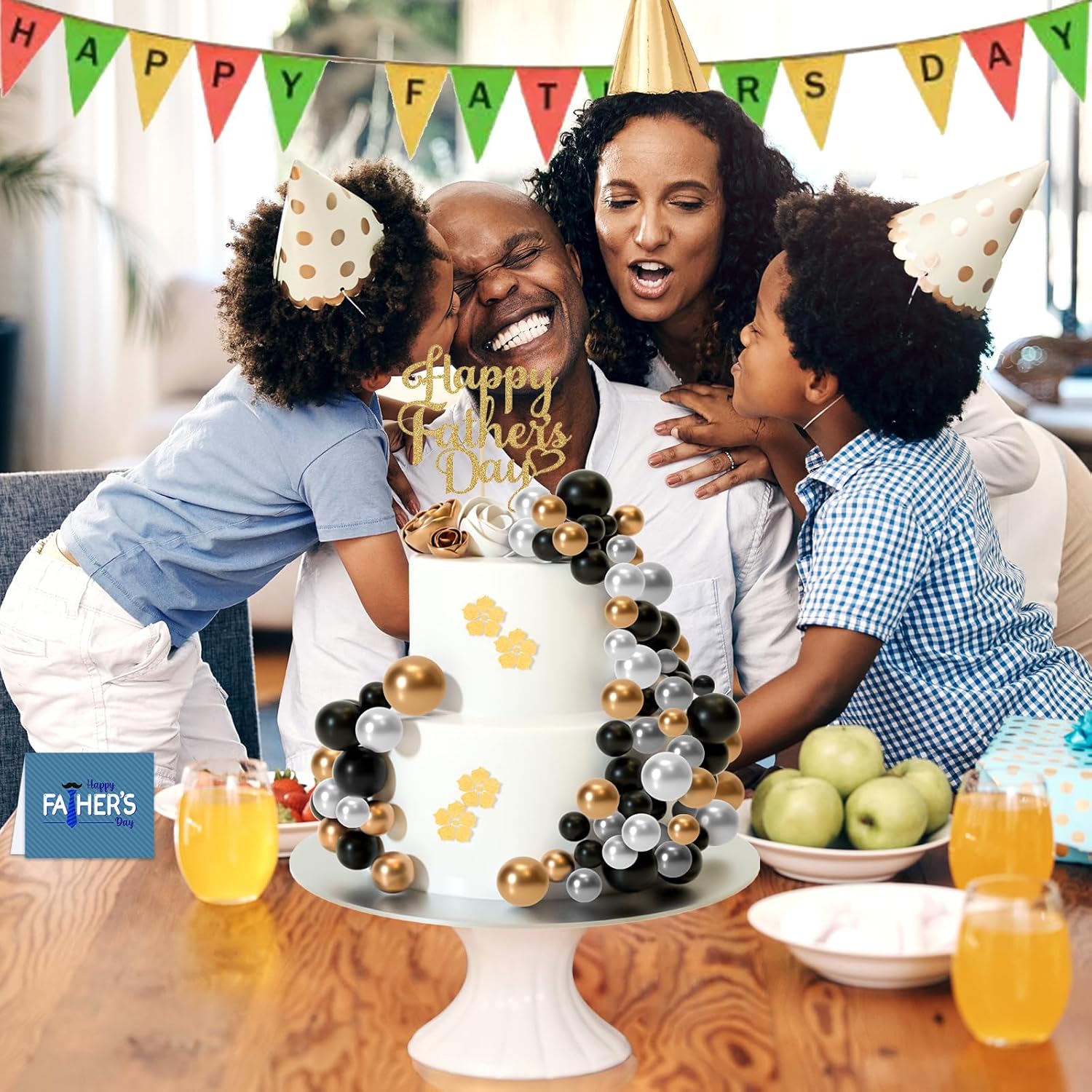 ASTARON 32 Pcs Ball Cake Topper Decorations Mini Balloons Cake Topper Sticks Foam Balls Cake Picks for Graduation Wedding Party Birthday Cake Decorations (Gold Silver Black)
