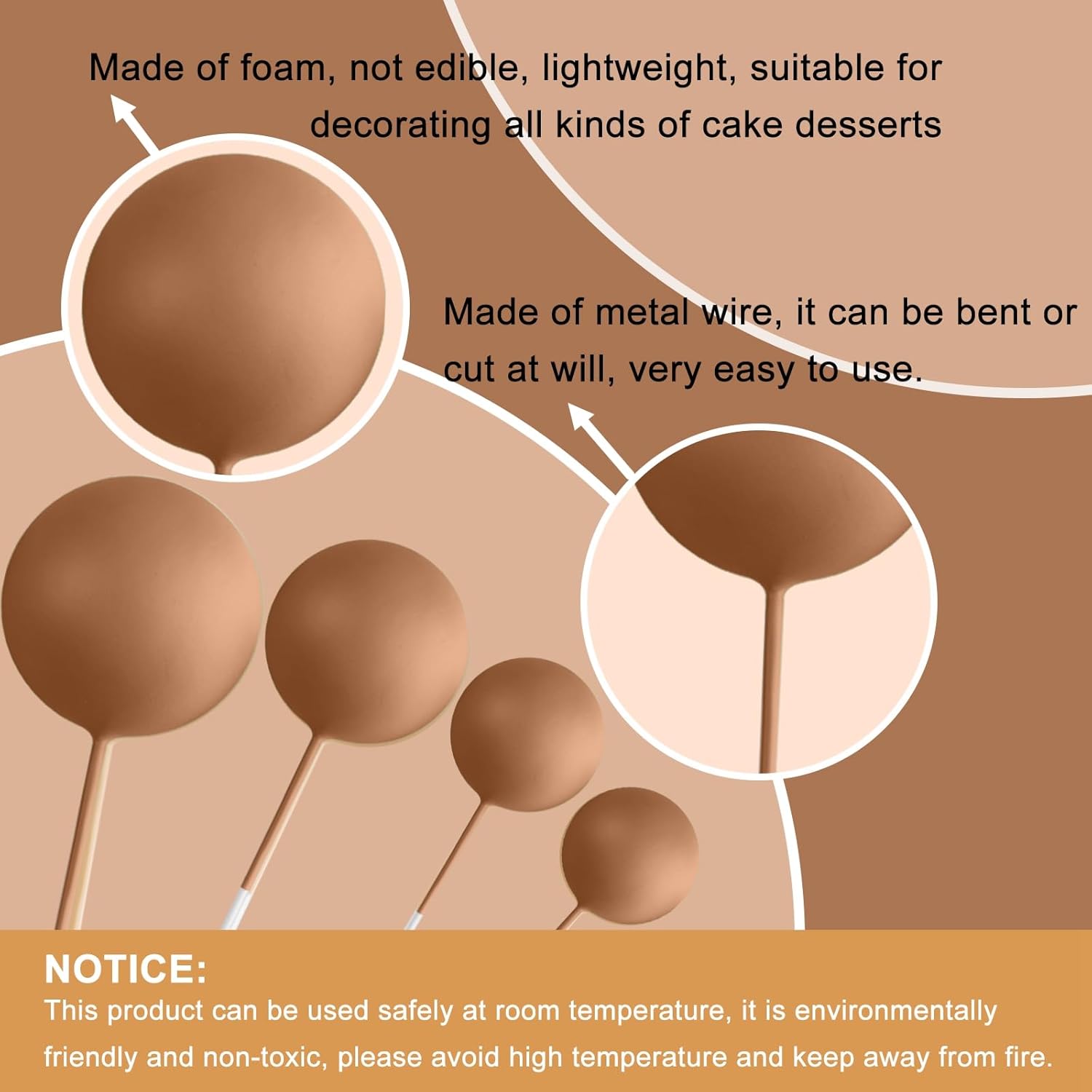 ASTARON 32 Pcs Ball Cake Topper Decorations Mini Balloons Cake Topper Sticks Foam Balls Cake Picks Cake Topper Balls Cake Decorations for Wedding Party Birthday Cake Decorating (Green Brown Gold)