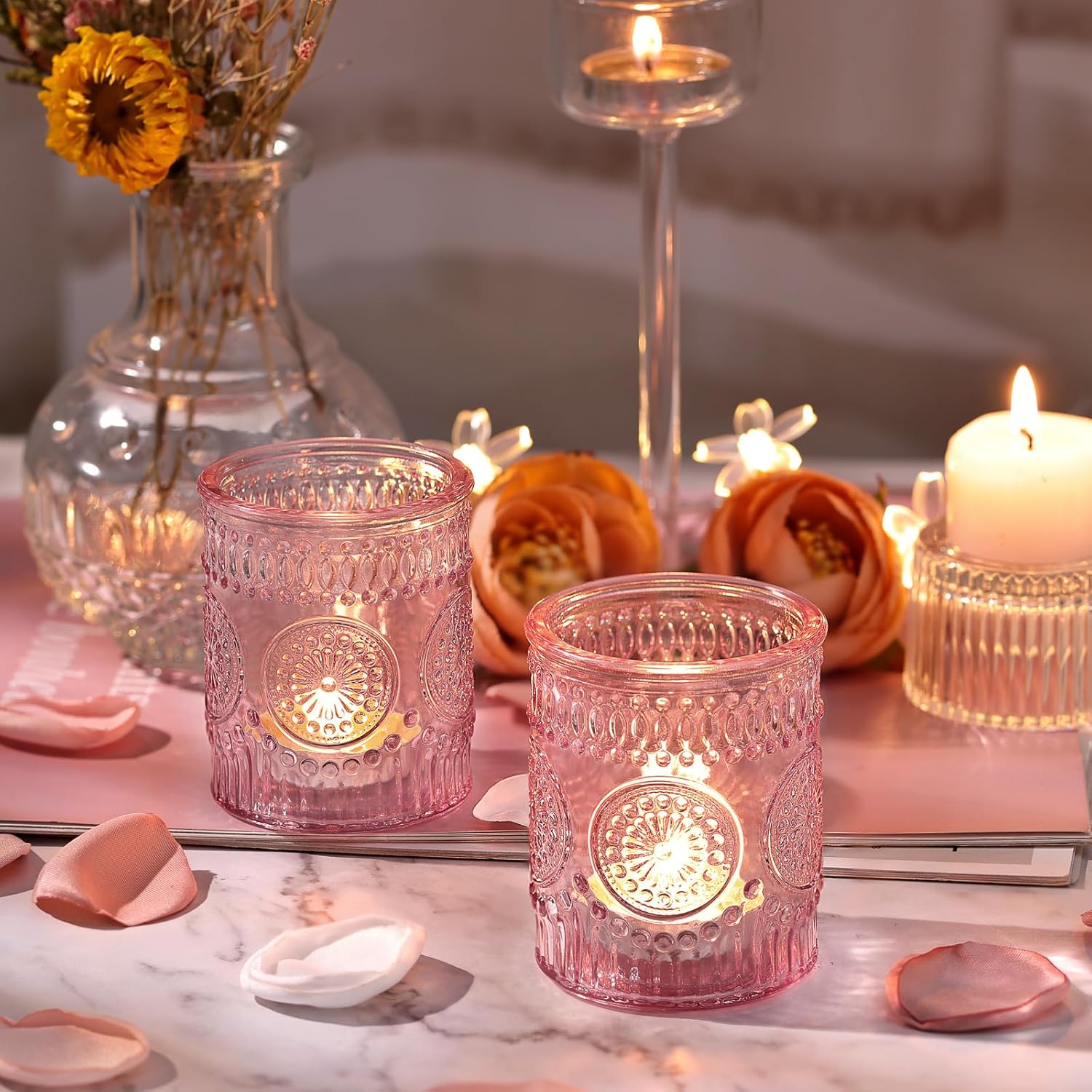 DARJEN Pink Votive Candle Holders Set of 36- Glass Candle Holders Bulk for Tea Light Candle, Embossed Candle Votives for Romantic Wedding Centerpiece, Home Table Decor