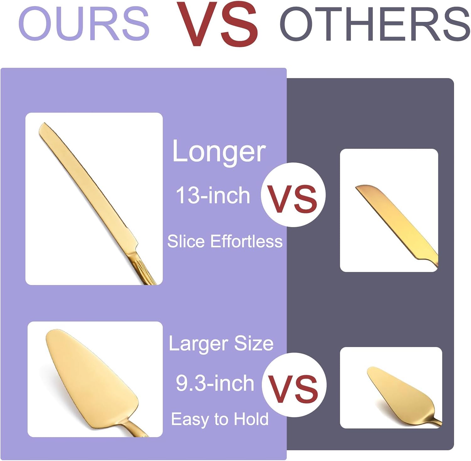 Gold Cake Cutter Set, Stainless Steel Cake Cutting Utensils Include Cake Knife and Cake Server suitable for Weddings, Birthdays, and Anniversaries