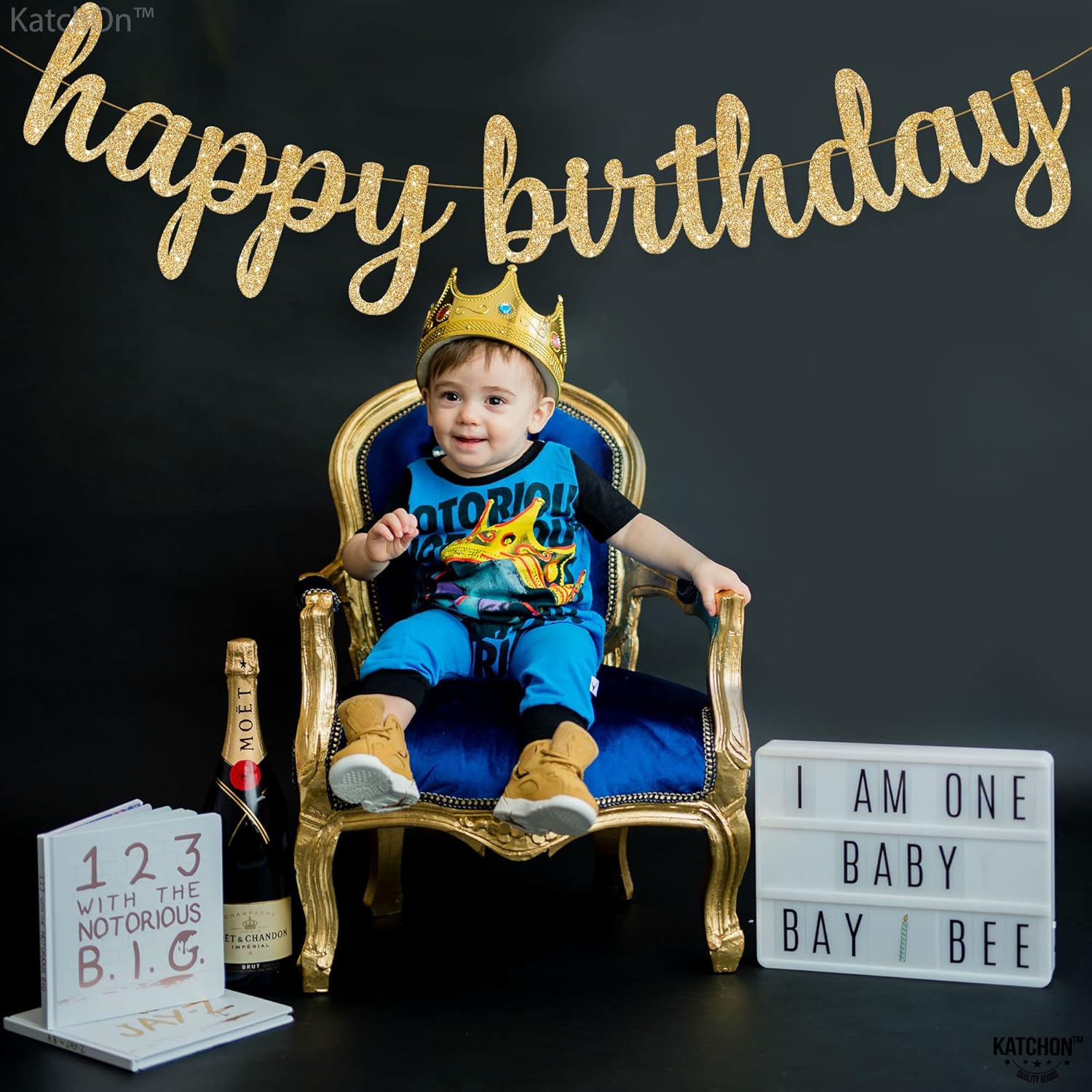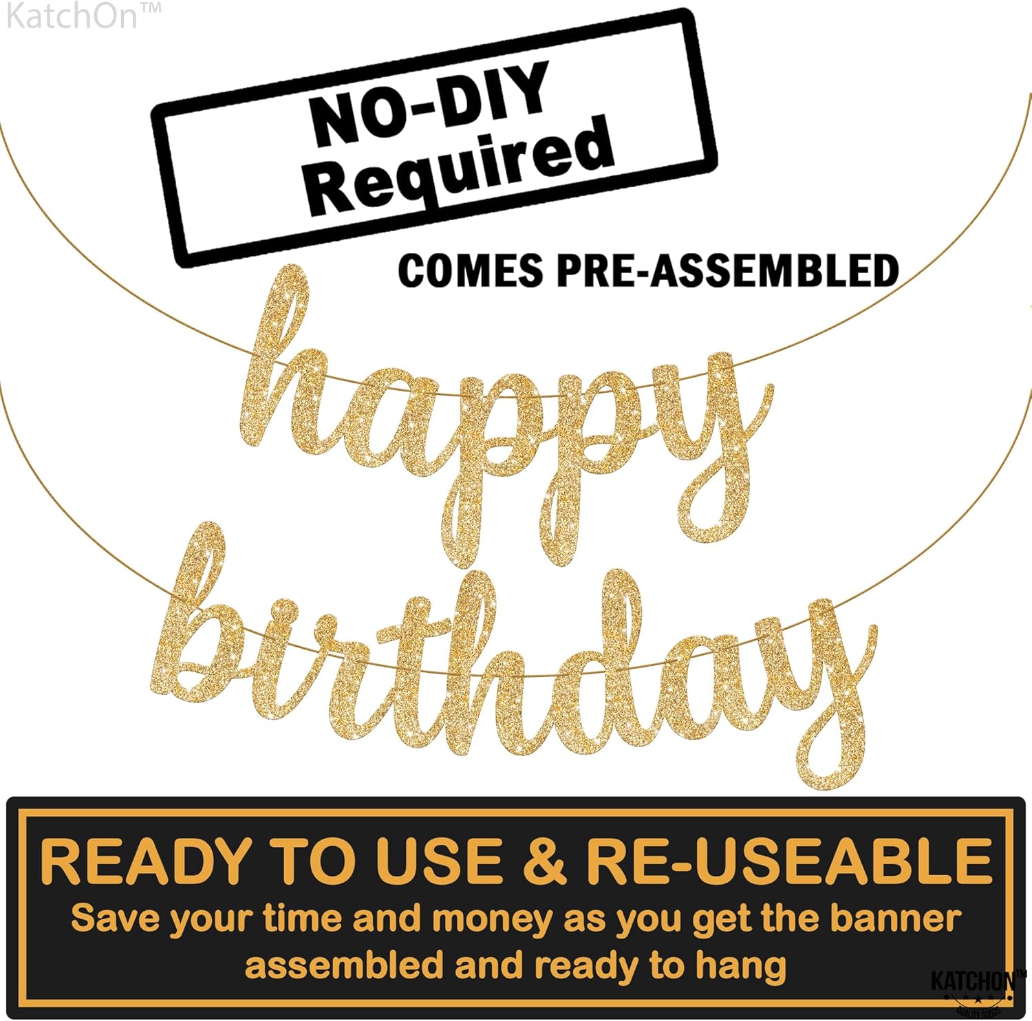 KatchOn, Glitter Cursive Gold Happy Birthday Banner - Pre-Strung, 10 Feet | Birthday Decorations for Women, Men, Boys and Girls | Hbd Banner Backdrop For Birthday Party Decorations | Gold Happy Birthday Sign