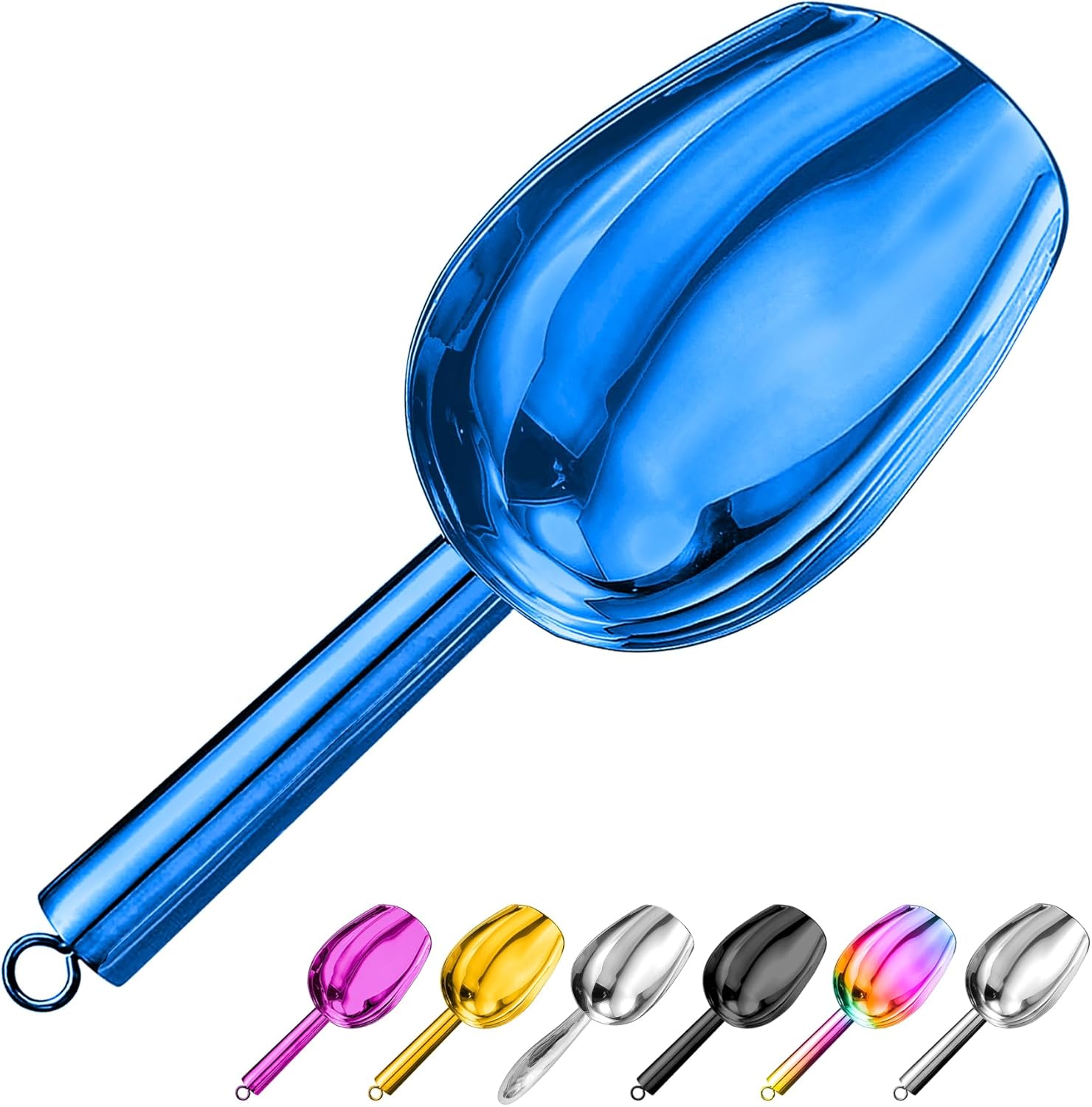 Metal Ice Scoop 3 Oz, Small Stainless Steel Ice scooper for Ice Maker Ice Bucket Kitchen Freezer Bar Party Wedding, Multipurpose for Coffee Bean,Flour Scoop,Dog Food Scoop (3 OZ-Blue)