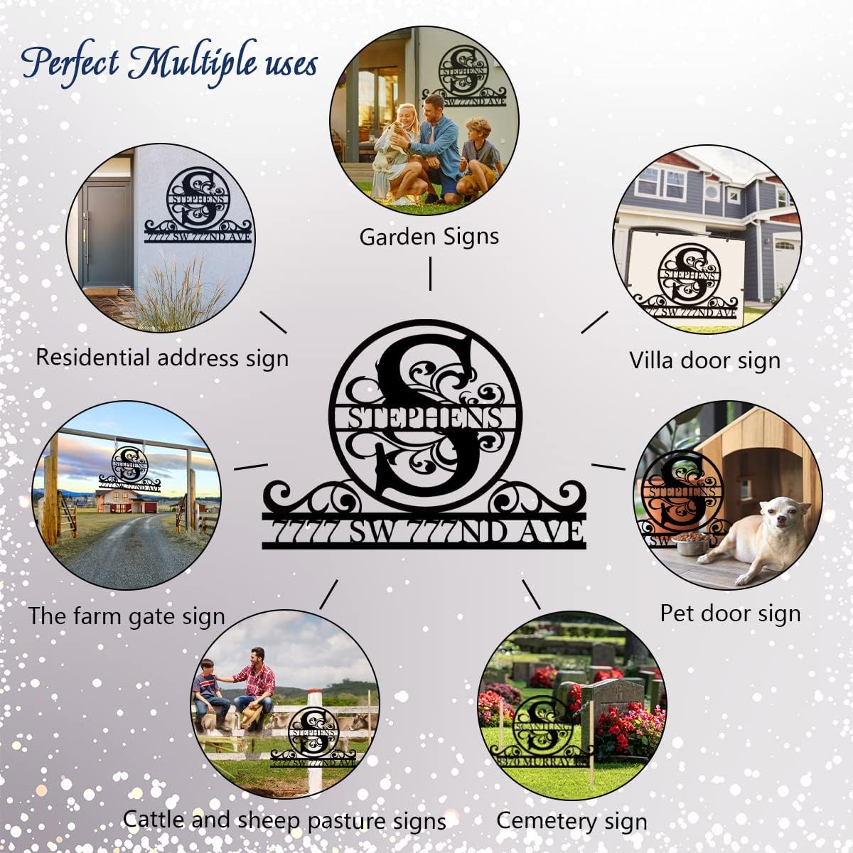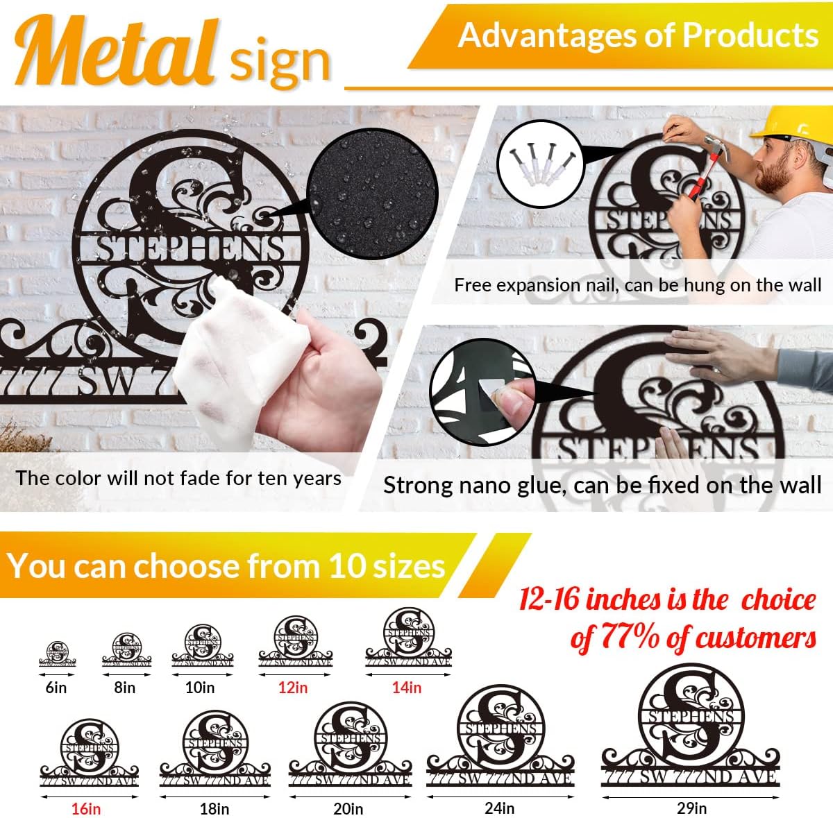 • Various sizes - Multiple uses:Available in a variety of sizes,Lengths range from 8" to 30".The metal signs can be used in many occasions.Such as: front door,front porch,fire-place,living-room,bed-room,studio,company,shop,shed.Besides,many activities is suitable,like:wedding parties,baby shower party.Mini size can give you unlimited imagination space to place.