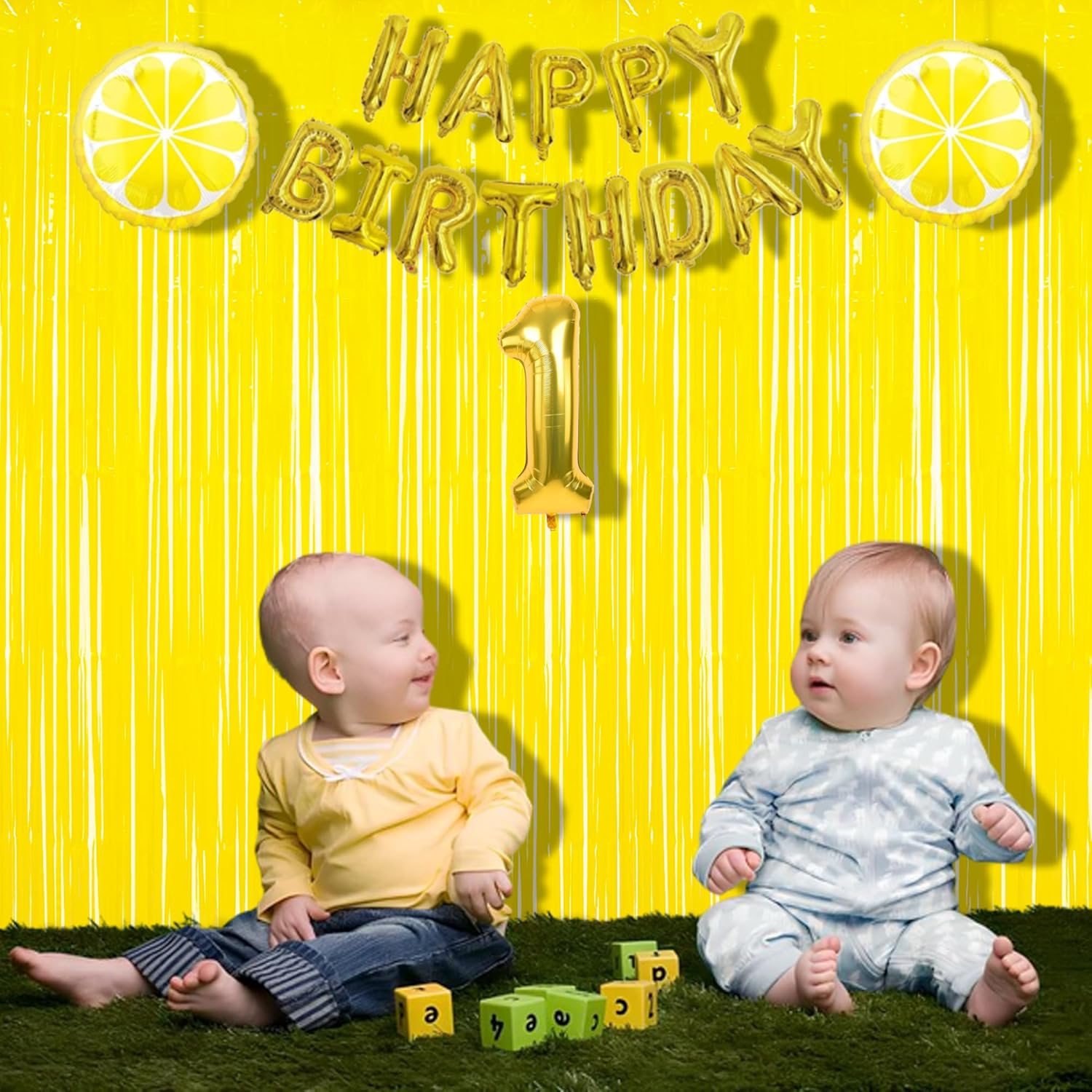 BRAVESHINE Foil Fringe Curtain Backdrop - 2 Pack Yellow Tinsel Photo Booth Backdrop Party Streamers for Easter, Birthdays, Christmas, Lemon, Pineapples, Kids' Party Decorations