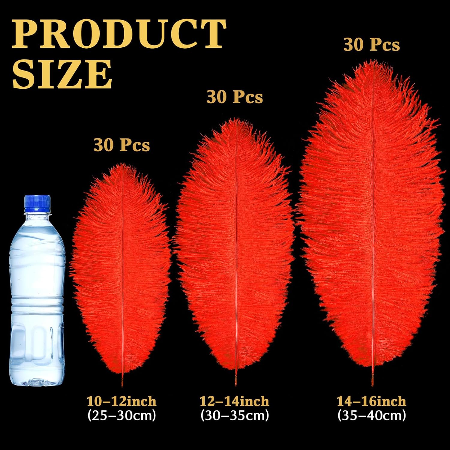 Maitys 90 Pcs Large Natural Ostrich Feathers Bulk 14-16 Inch (35-40cm) 12-14 Inch (30-35cm) 10-12 Inch (25-30cm) Ostrich Feathers Plumes for Centerpieces Wedding(Red)
