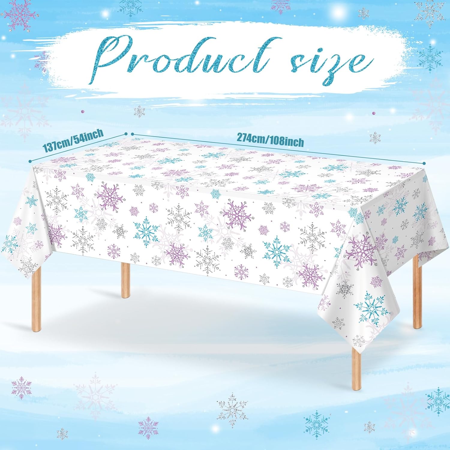 3 Pieces Christmas Snowflake Party Tablecloth Decorations,Plastic Purple and Blue Winter Wonderland Table Cover for Winter Christmas Birthday Holiday Party Decorations and Supplies,54x108 inch
