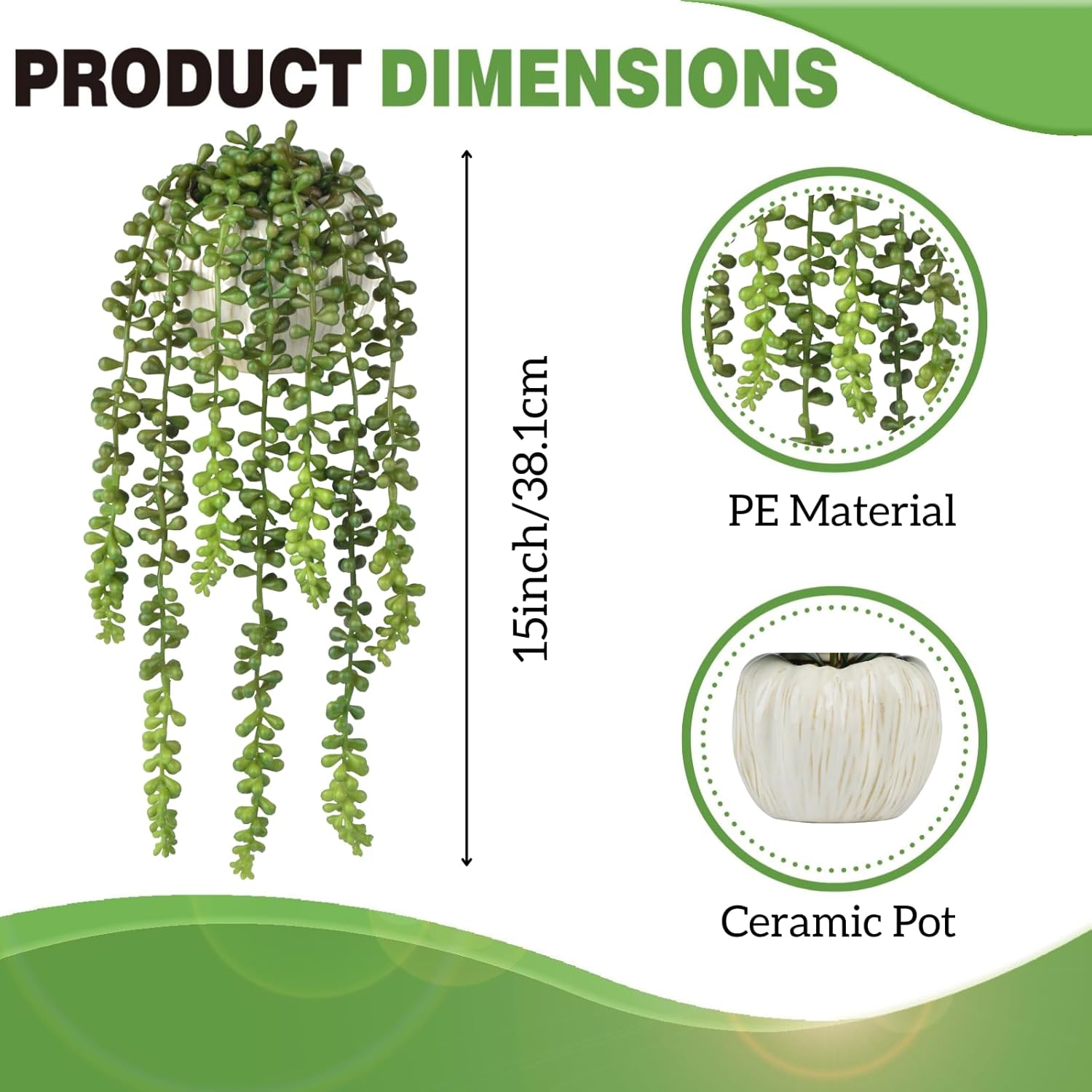 • Portable Size: Measuring at 4.33×3.74×15 inch, our faux string of pearls plant is lightweight and easy to move around, perfect for decorating any space.