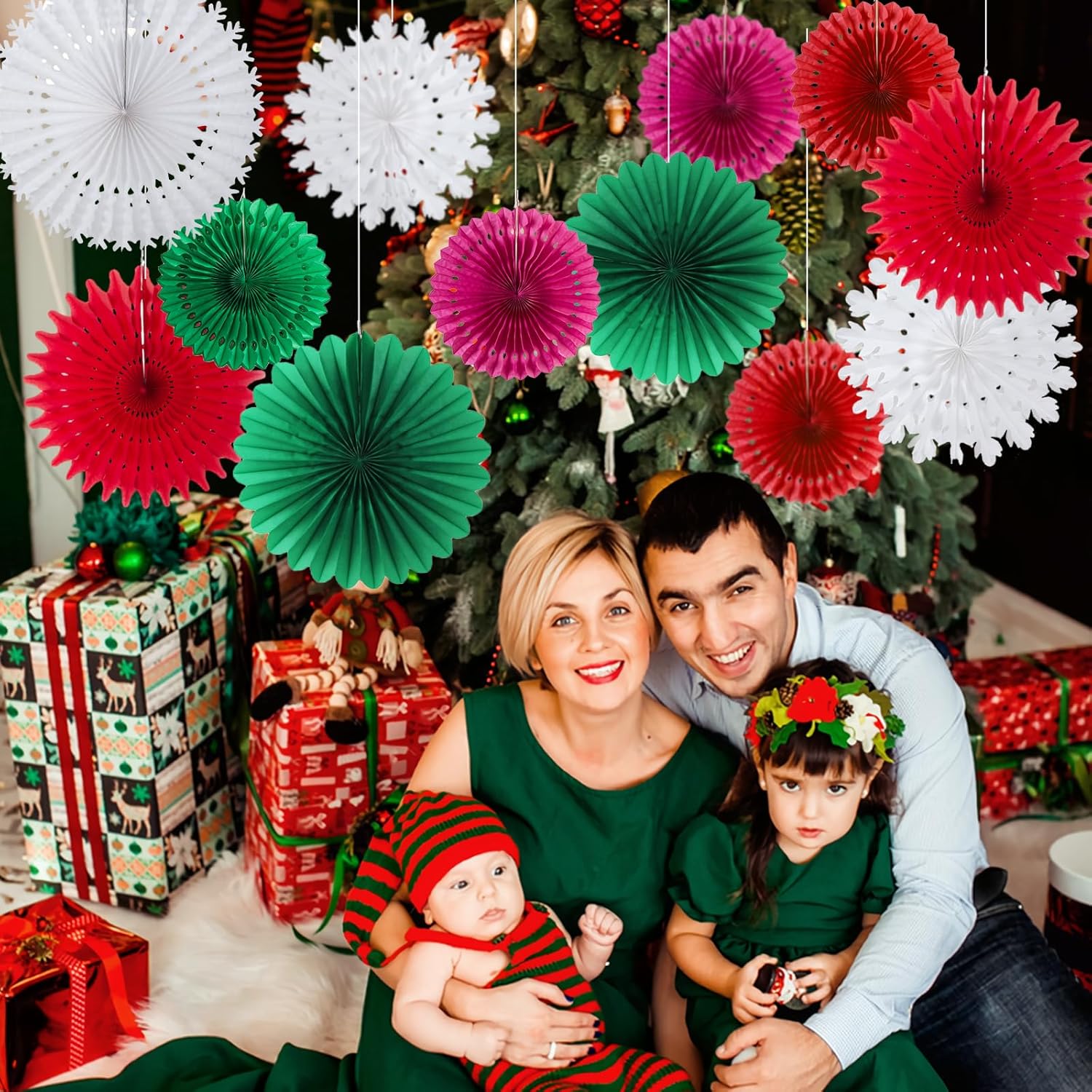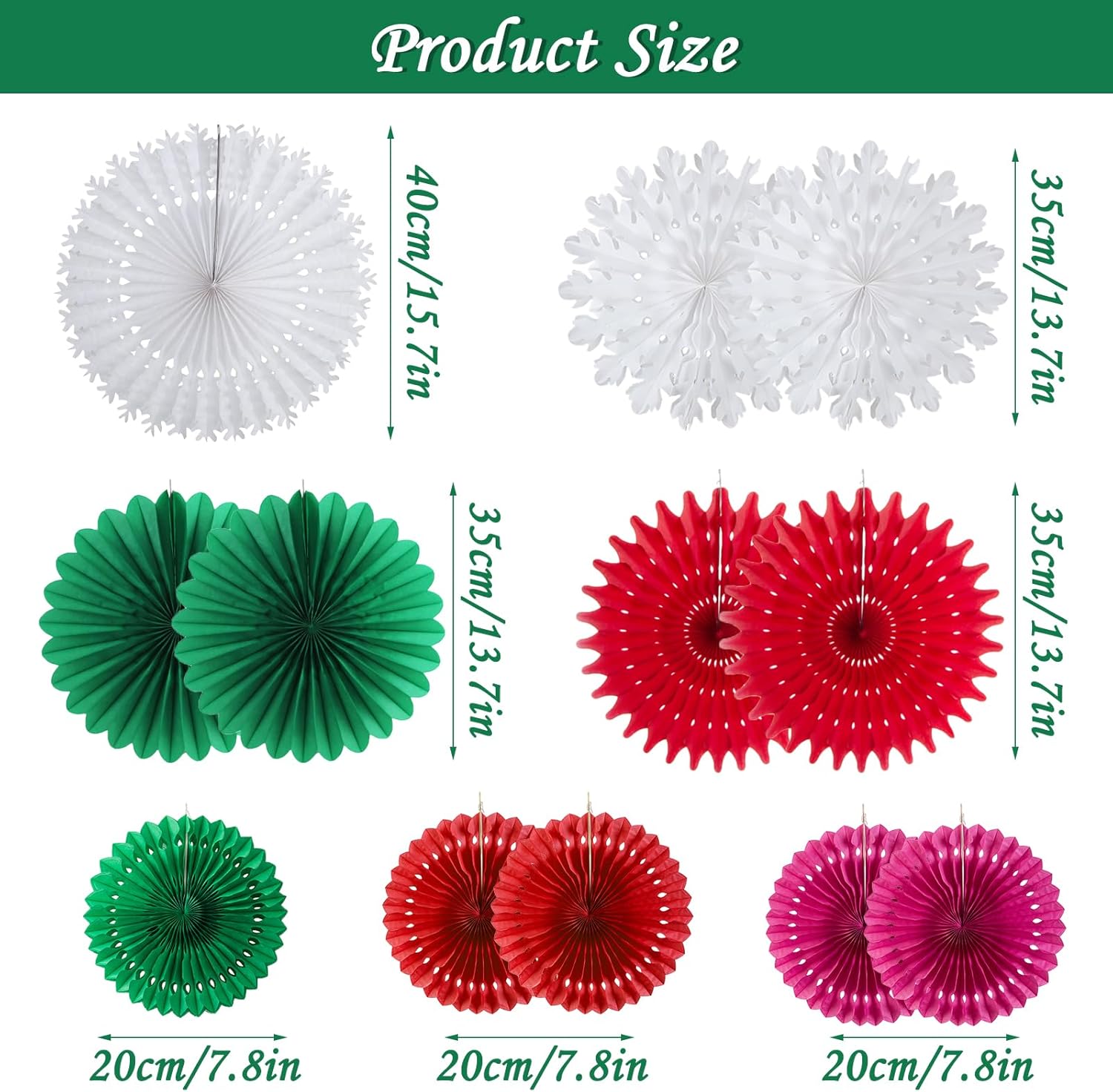 SUNBEAUTY Pack of 12 Christmas Party Decorations Christmas Classroom Decorations Hanging Paper Fans for Xmas Holiday Ceilings Wall Decor Winter New Year Party Supplies