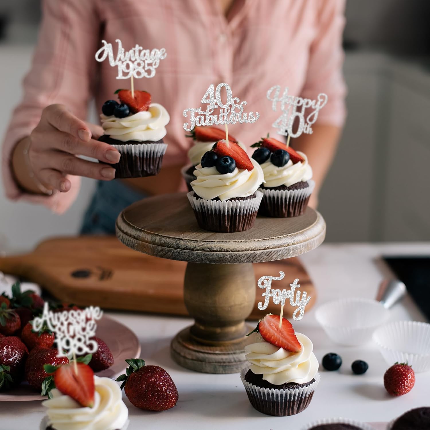 • 💖【Birthday Party Supplies】: 30Pcs Number Cupcake Toppers are perfect for vintage 1985 theme party, 40th birthday theme party, 40th wedding anniversary theme party,cheers to 40 years theme party cupcake decorations, they will make your cupcake more attractive and bring the fun to your party, make your guests fall in love with them!