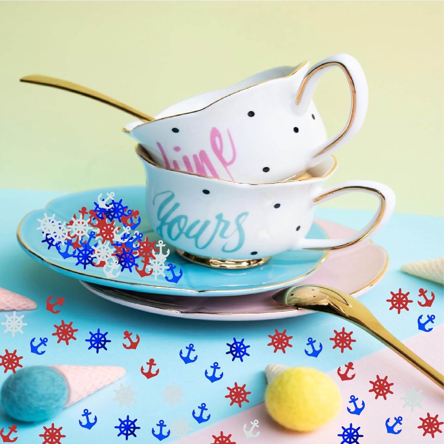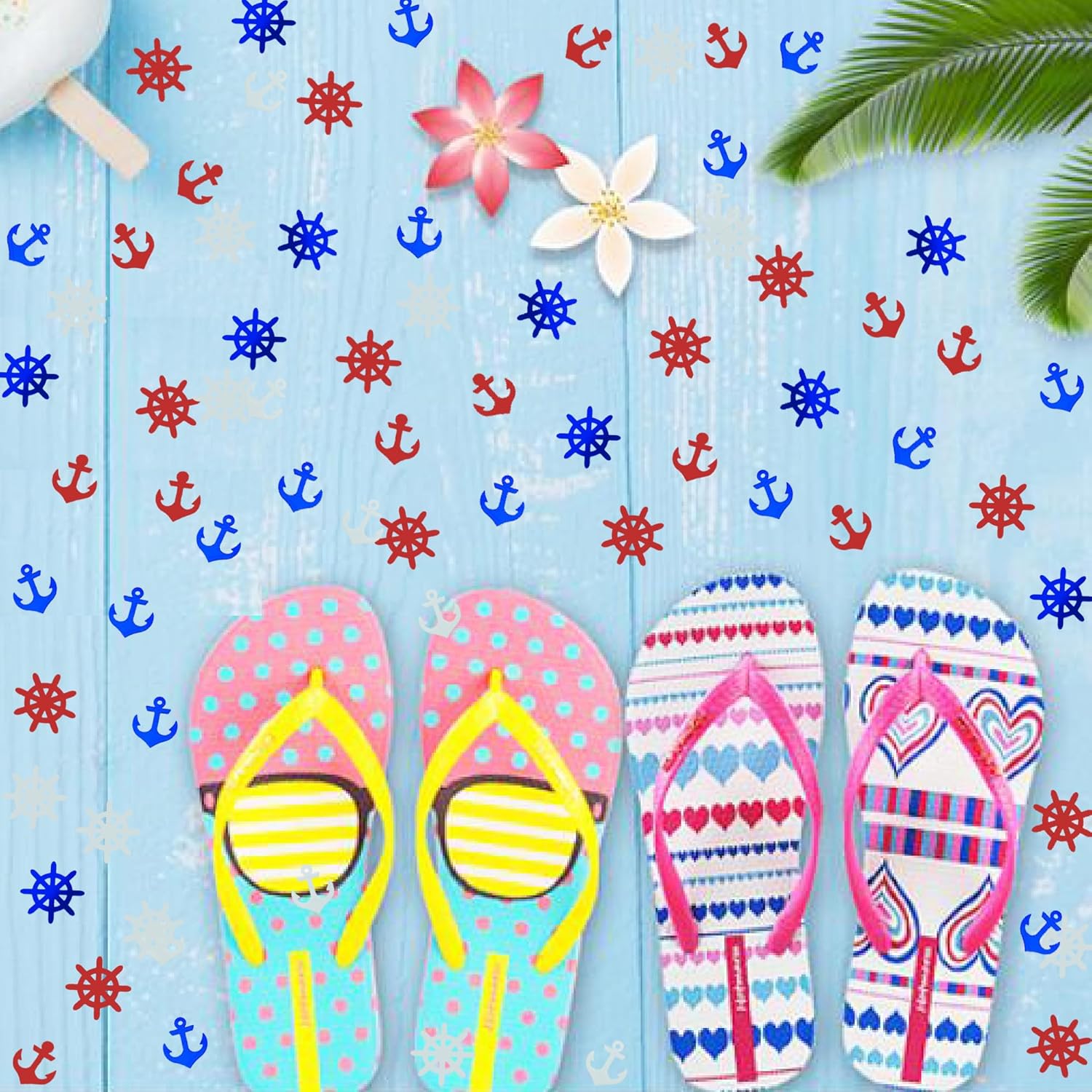 Confetti Anchor Rudder Party Favor Table Metallic Foil Party Decoration Nautical Baby Shower Birthday for Patriotic Wedding Engagement Bachelor Theme Red White Blue(Anchor)
