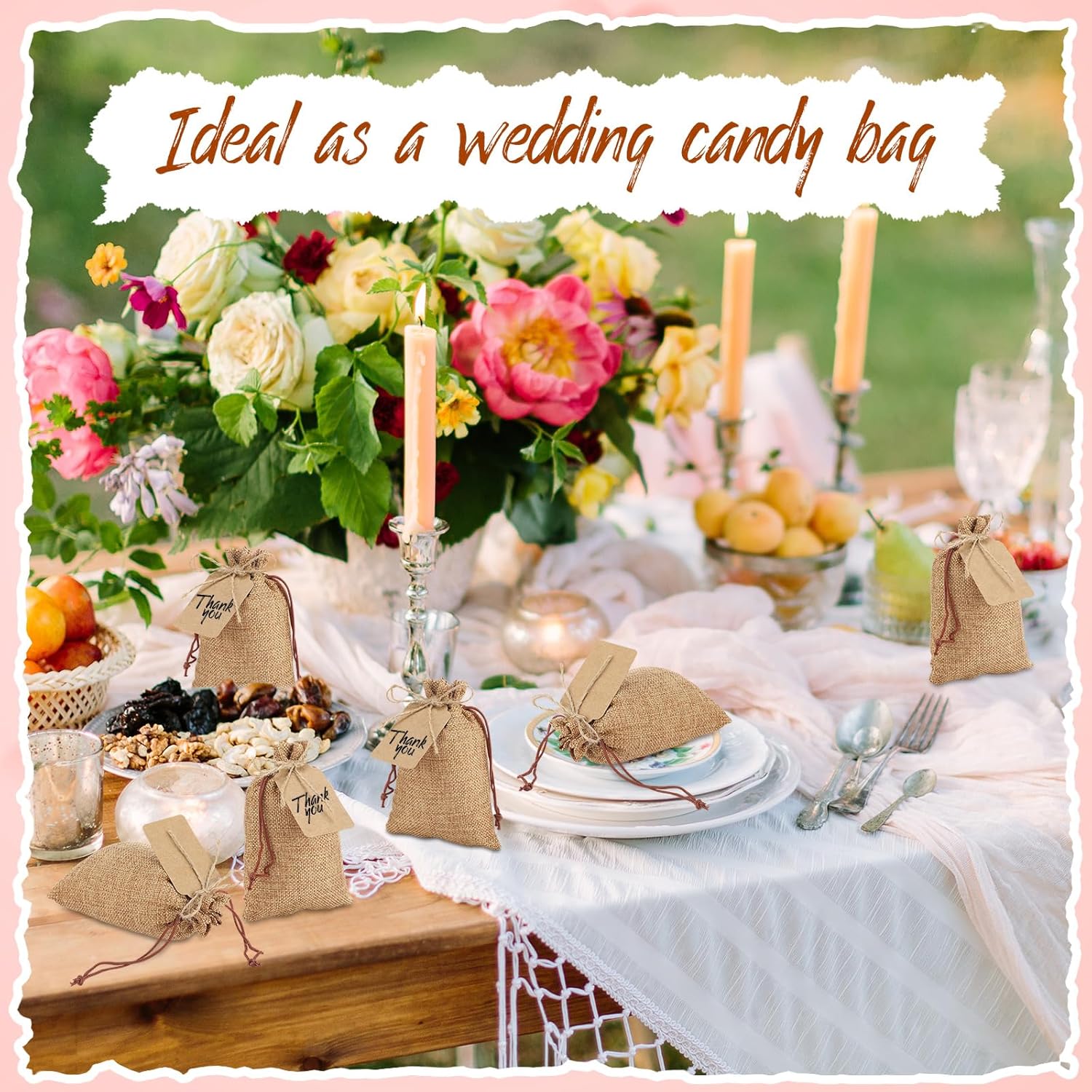• Included Components : 100 Pcs Burlap Gift Bags, Tags, 1 Bundle Hemp Rope
