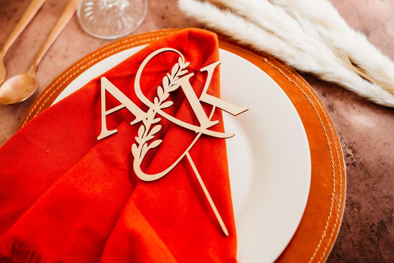 • Custom Initials Cake Topper – Personalized acrylic and wooden cake decoration featuring wedding initials or birthday initials in modern ampersand design.
