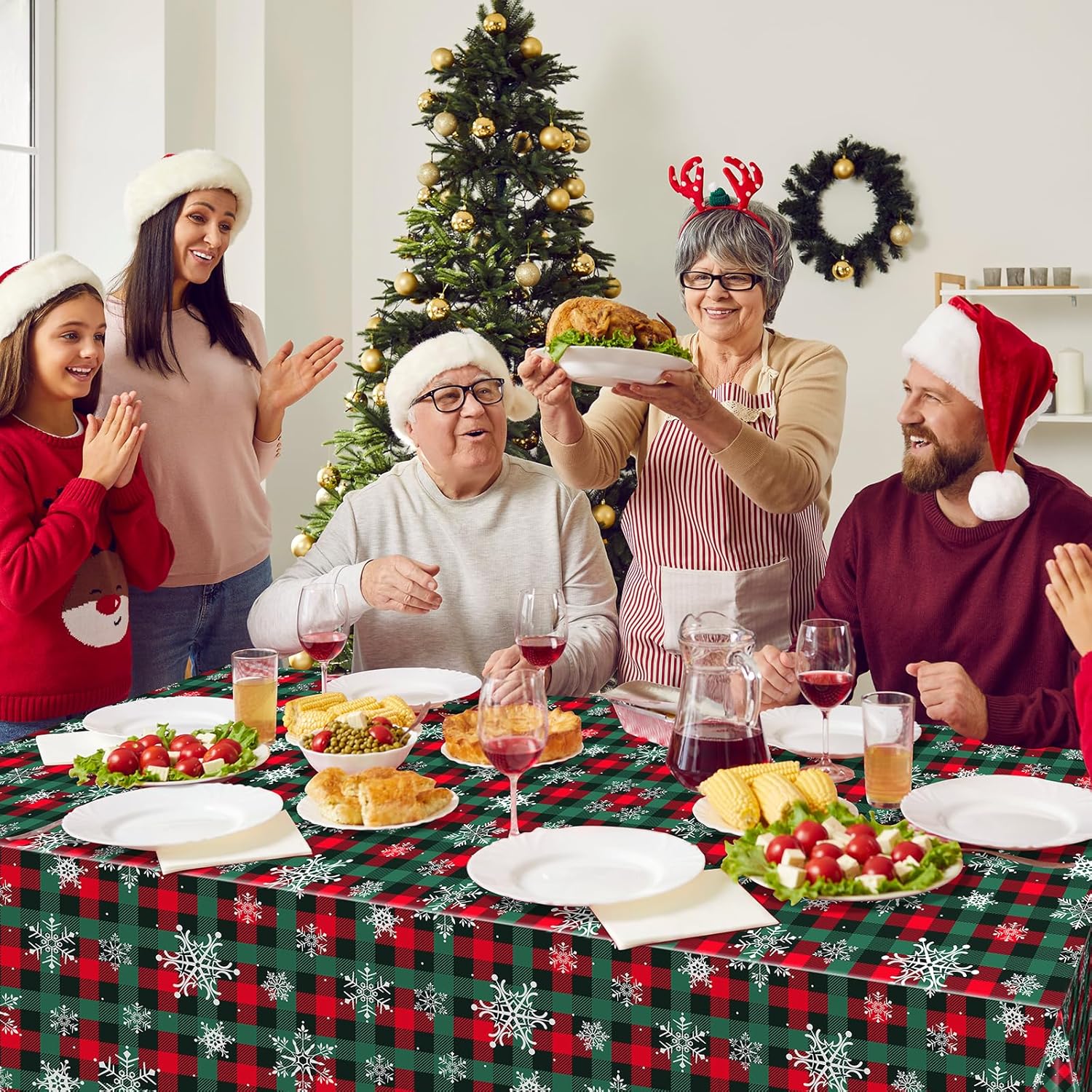 • Large size:these Merry Christmas snowflake plaid party tablecloth measures approx. 137x274cm/54X108 inch, which fits for 8 feet long tables that can accommodate 8-10 people, It’s large enough for your to hold a winter holiday and Christmas theme party with your family and friends to share happiness