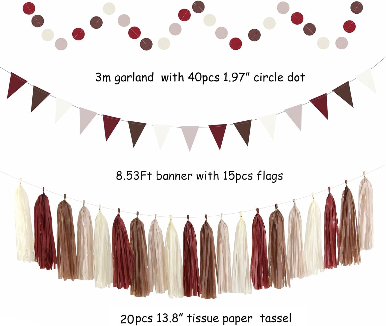 • Suitable Occasion:They are perfect for birthday,rustic weddings,engagement,boho baby shower decorations,bridal shower decor,bachelorette,burgundy party decorations,fall autumn decorations,Thanksgiving,boho party decorations,mothers day,valentines day,Christmas decorations,brown party decorations.