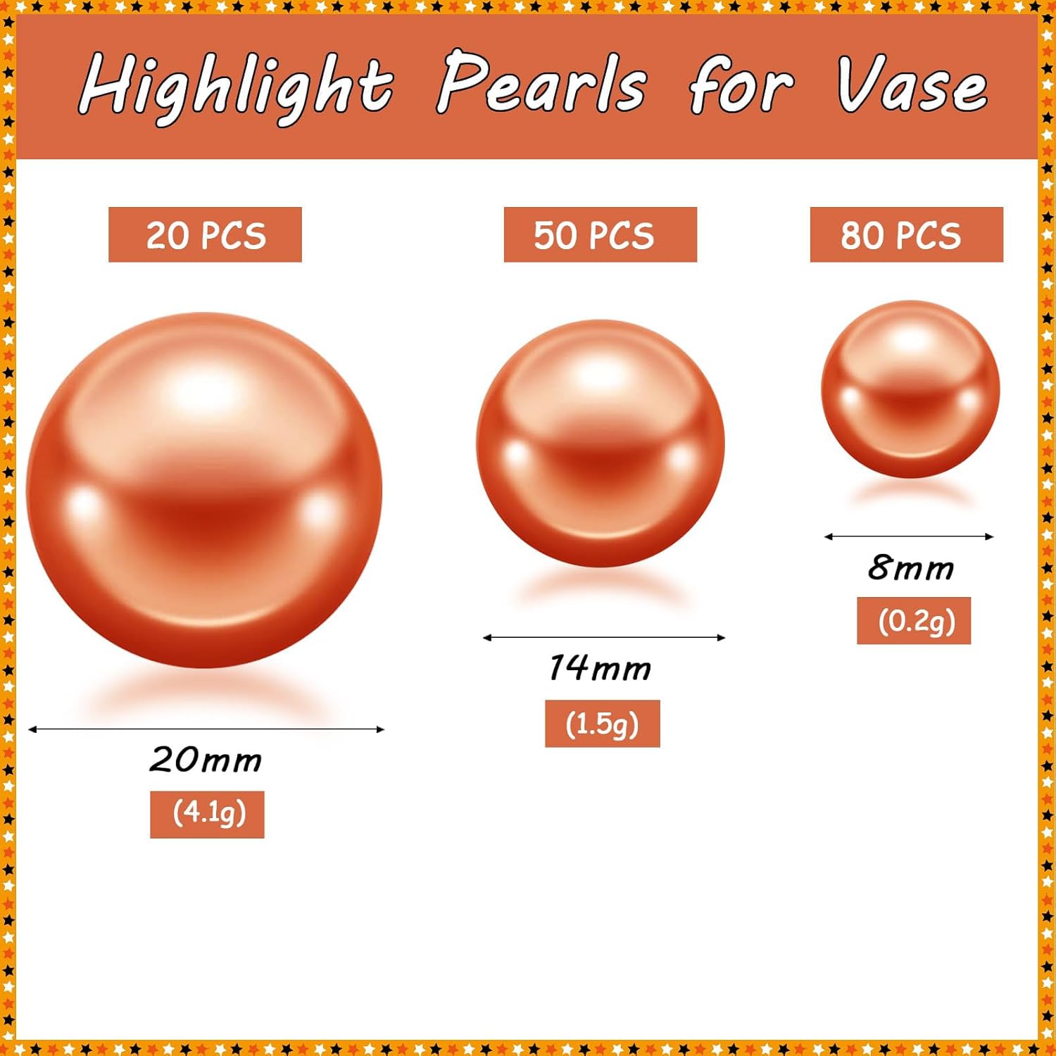 150Pcs Orange Polished No Hole Faux Pearl Beads for Vase Filling Decorations, Plastic Pearls Vase Fillers, Table Scatters, Wedding Centerpiece, Home Decor, 8/14/20 mm