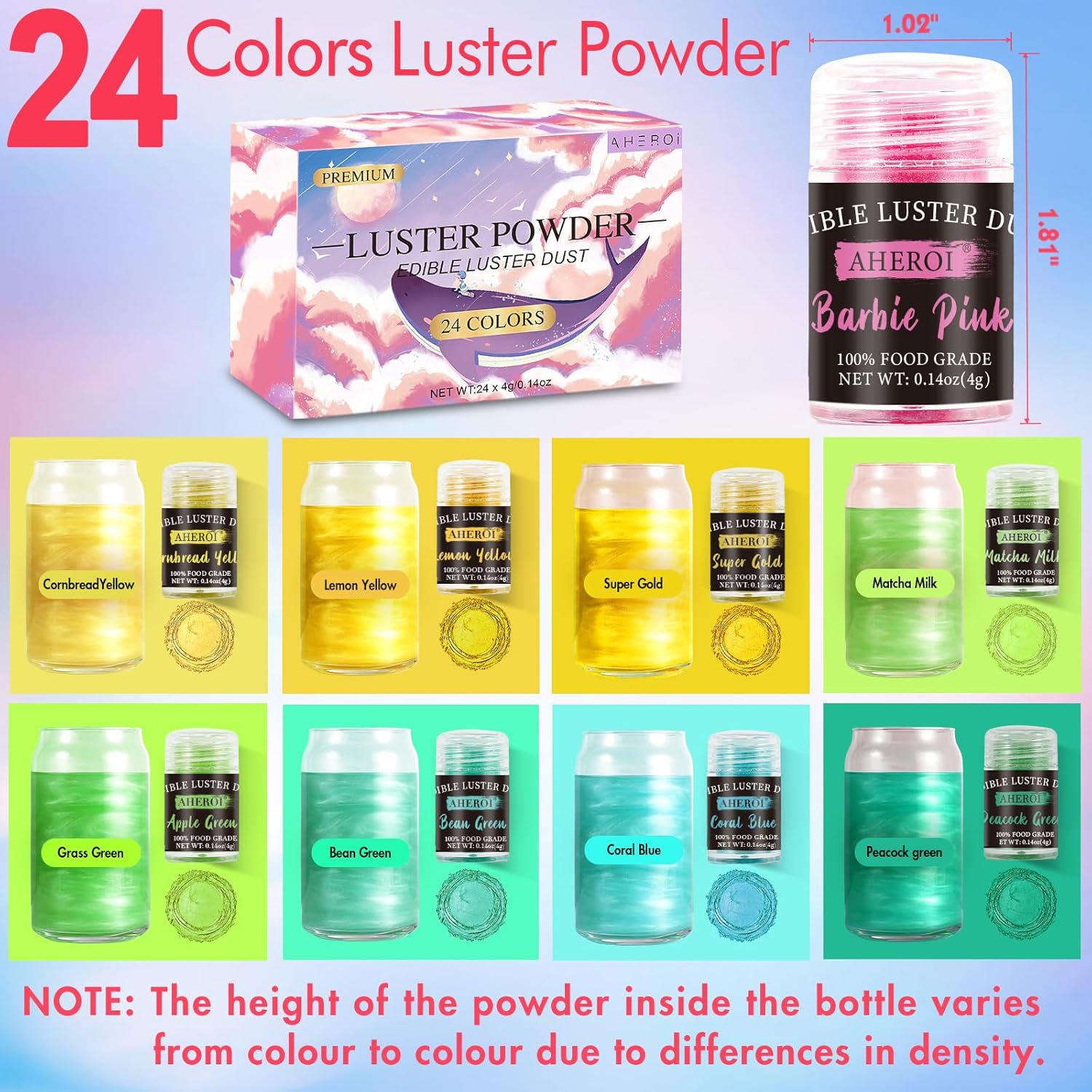 Aheroi Edible Glitter, 24 Colors Luster Dust Edible, Cocktail Glitter Luster Dust Sprinkles Drink Glitter Set, Shimmering Glitter Powder Glitter for Fondant Cake Chocolate Cocktail Candy(4g/0.14oz)