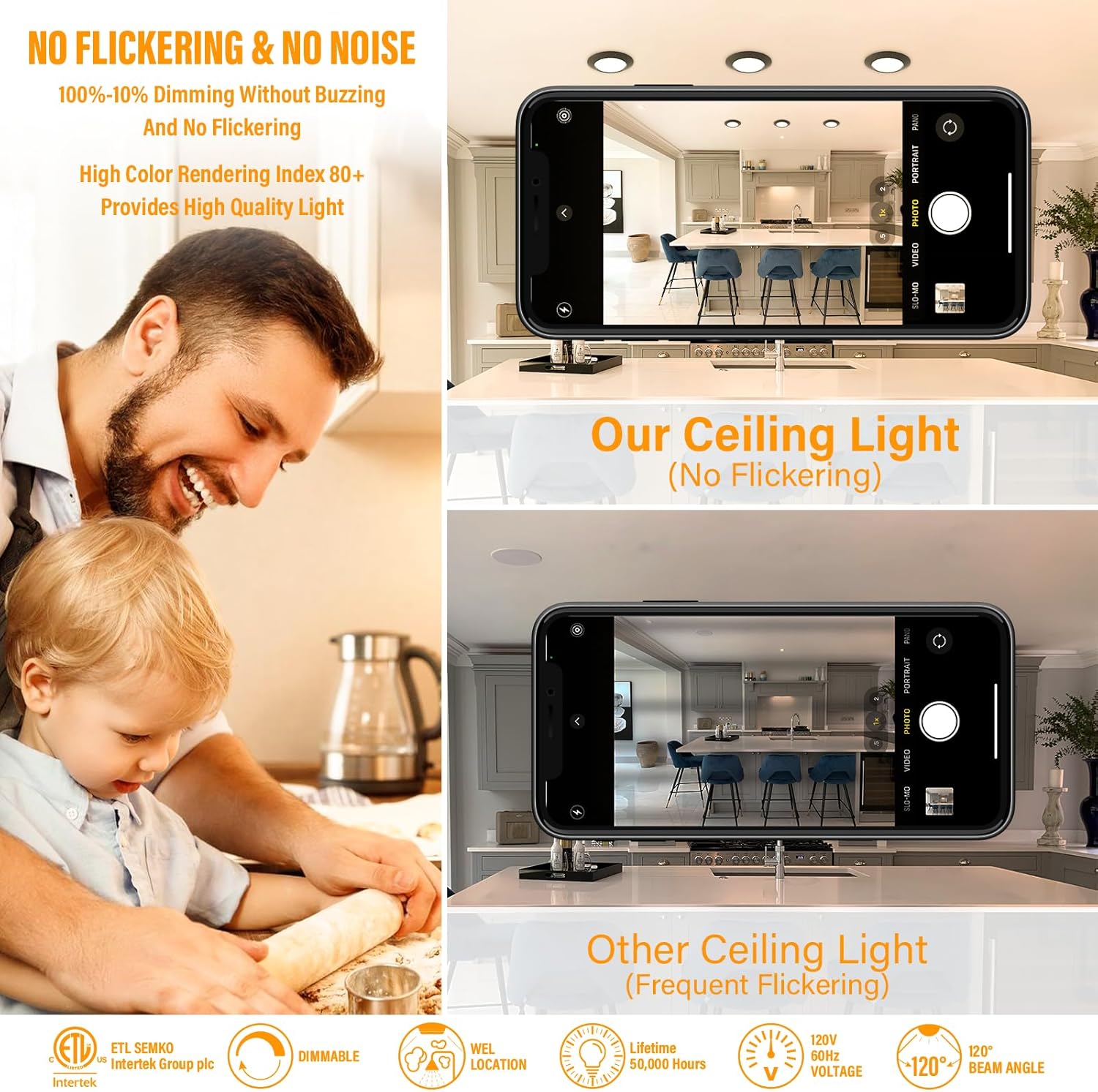 • ● EASY INSTALLATION: Low profile and sleek LED ceiling disk/disc light upgrades the existing recessed lights to energy efficient LED with ease and flushes mount onto junction box for new construction site to avoid using recessed can; It provides surface mount light for 3'' and 4'' junction boxes & fire rated boxes.