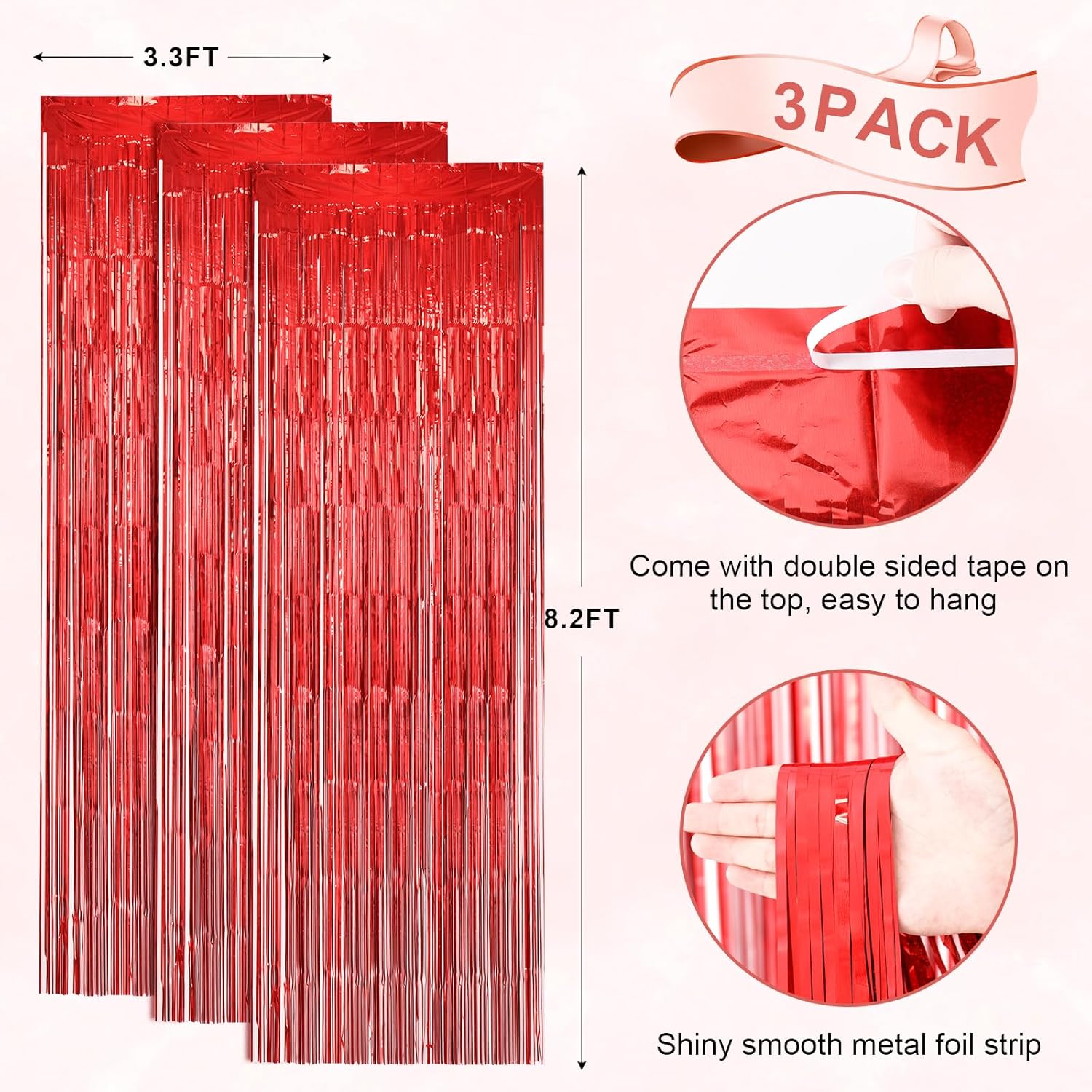 • Premium Material: This Laser Red foil curtain backdrop is made of stable tinsel, non-fading, stay shiny and reusable. Unfold it and then enjoy your glittering party
