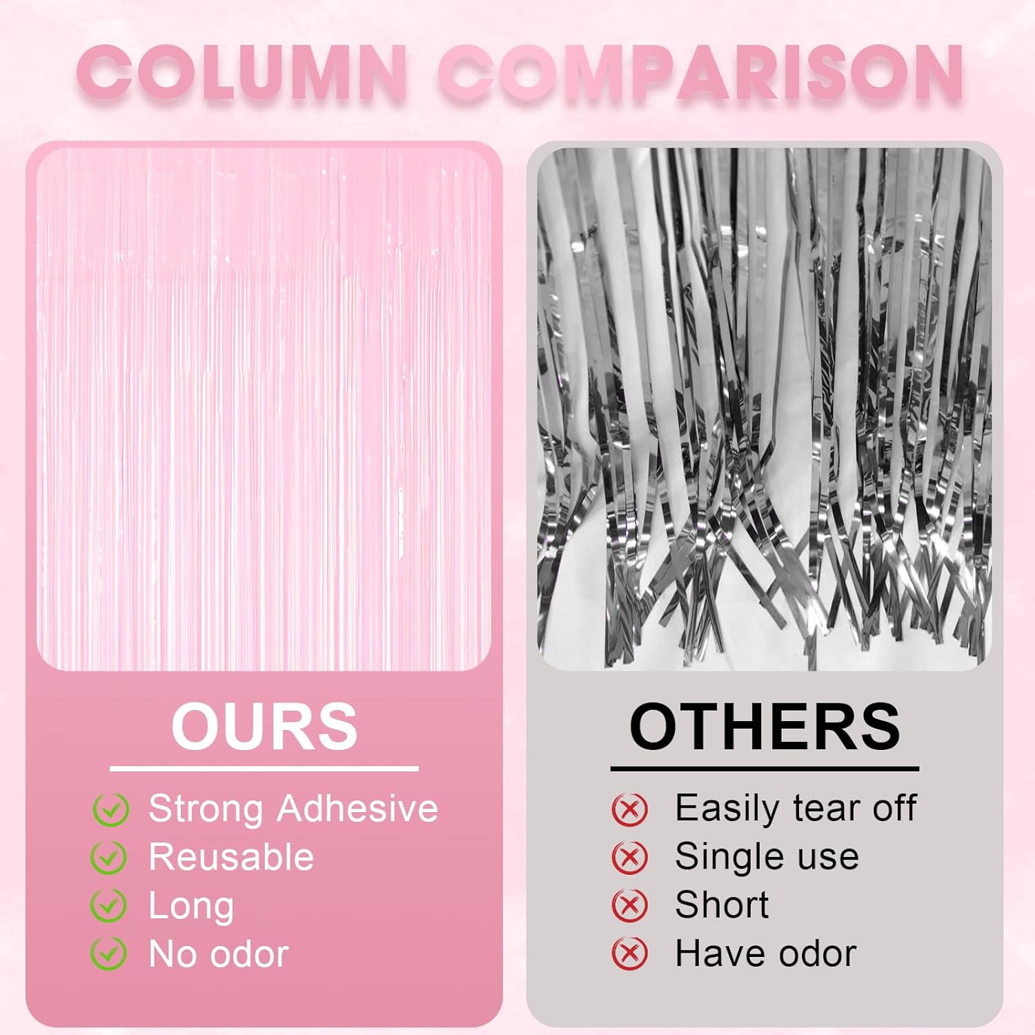 • Eye-Catching Design: These tinsel backdrops boast vibrant colors and a shimmering effect that reflects light beautifully. Your friends will be mesmerized by the captivating atmosphere these curtains create