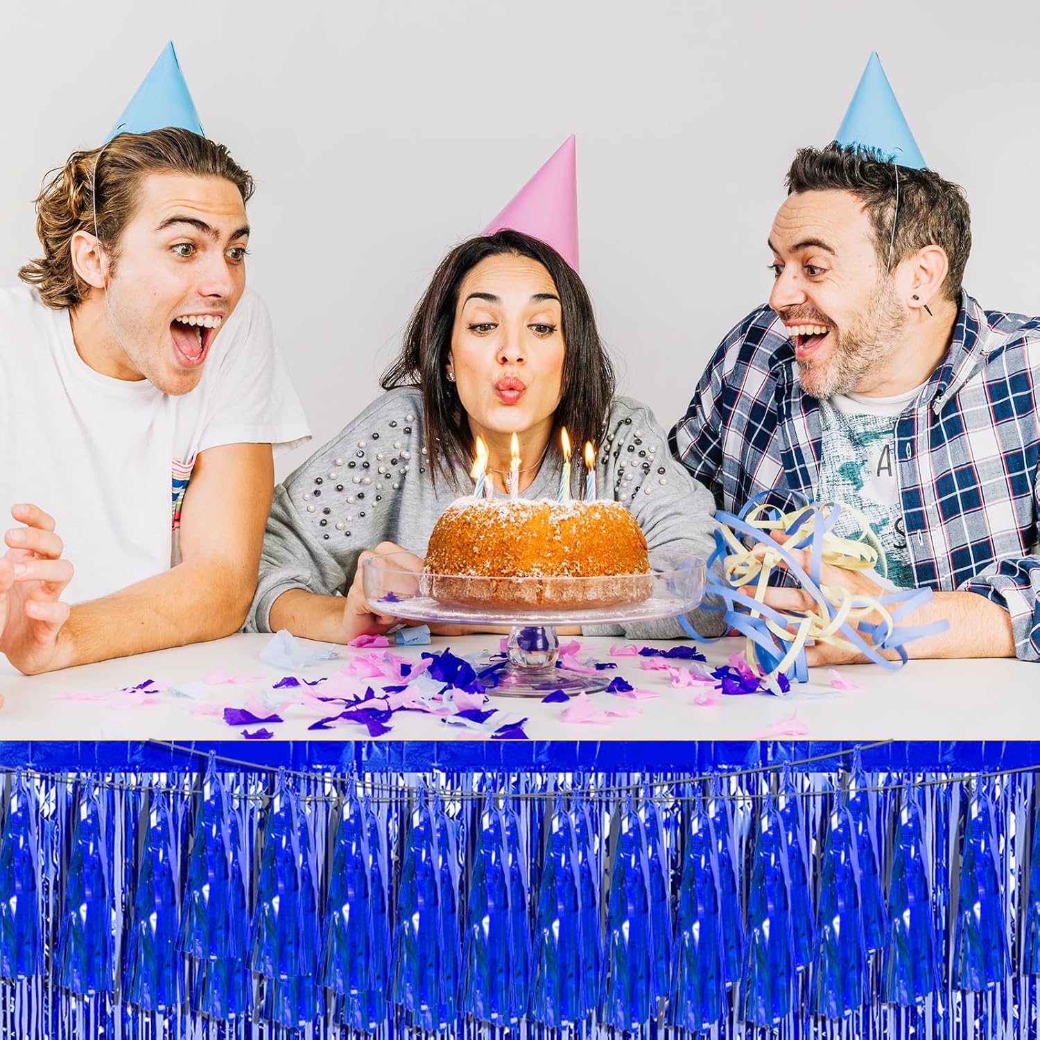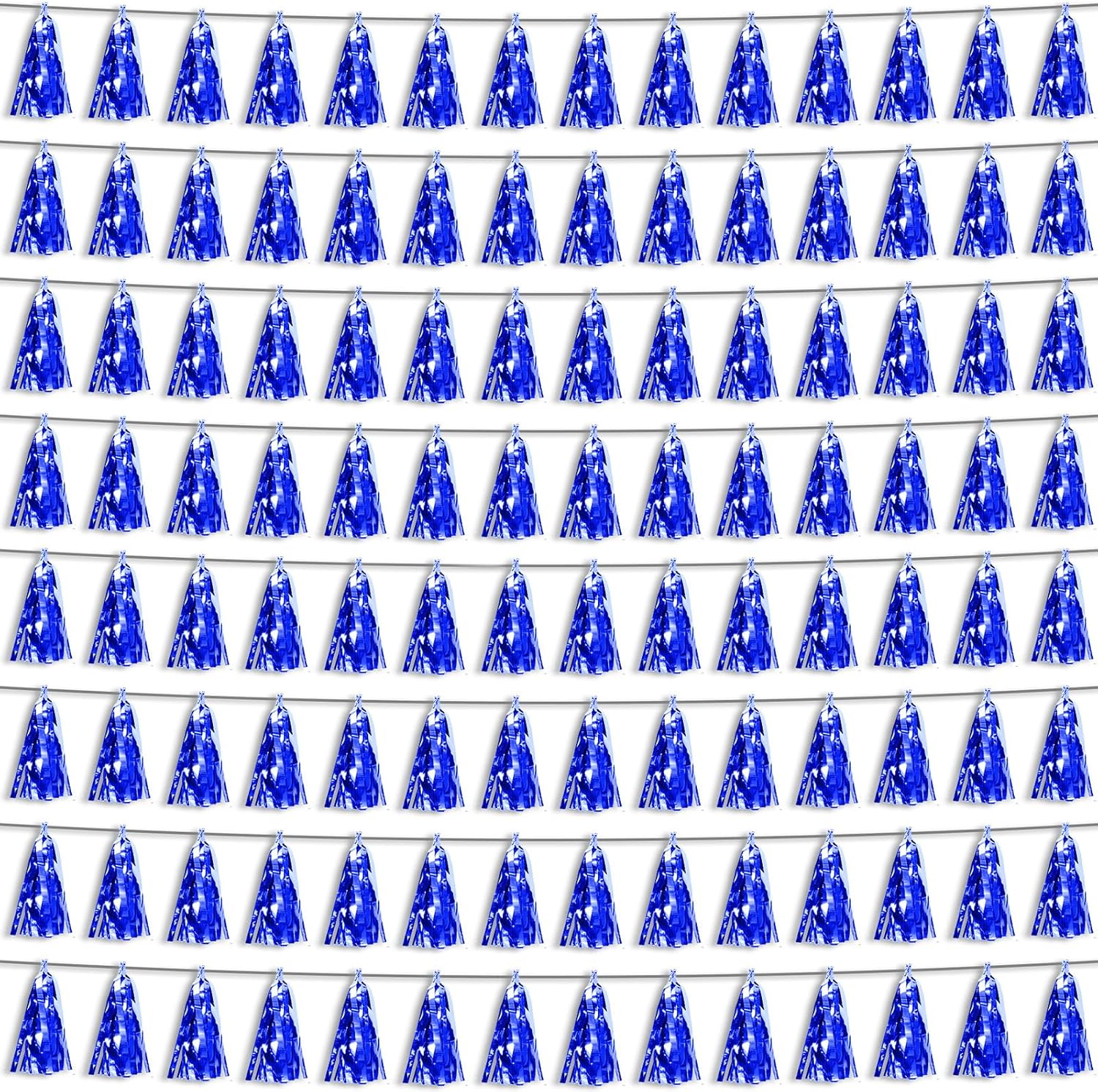 8P Blue Foil Fringe Metallic Tassel Streamers Banner Tassel Garland for Parade Floats, Bachelorette, Wedding, Birthday, Halloween, Christmas, Bridal/Baby Shower Party Decorations