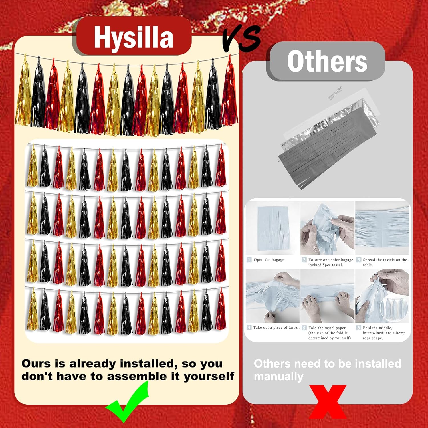• 【Applicable Occasions】you can use the black red gold tinsel fringe garlands to decorate a classroom, the stage for a school program, a homecoming float, a wedding decoration, a birthday party, a baby shower, Halloween, Christmas, new year's Eve, a housewarming party, a bachelorette party, an anniversary Memorial, Hollywood Party, Independence Day, Carnival Party, Bridal Shower, Graduation and more.