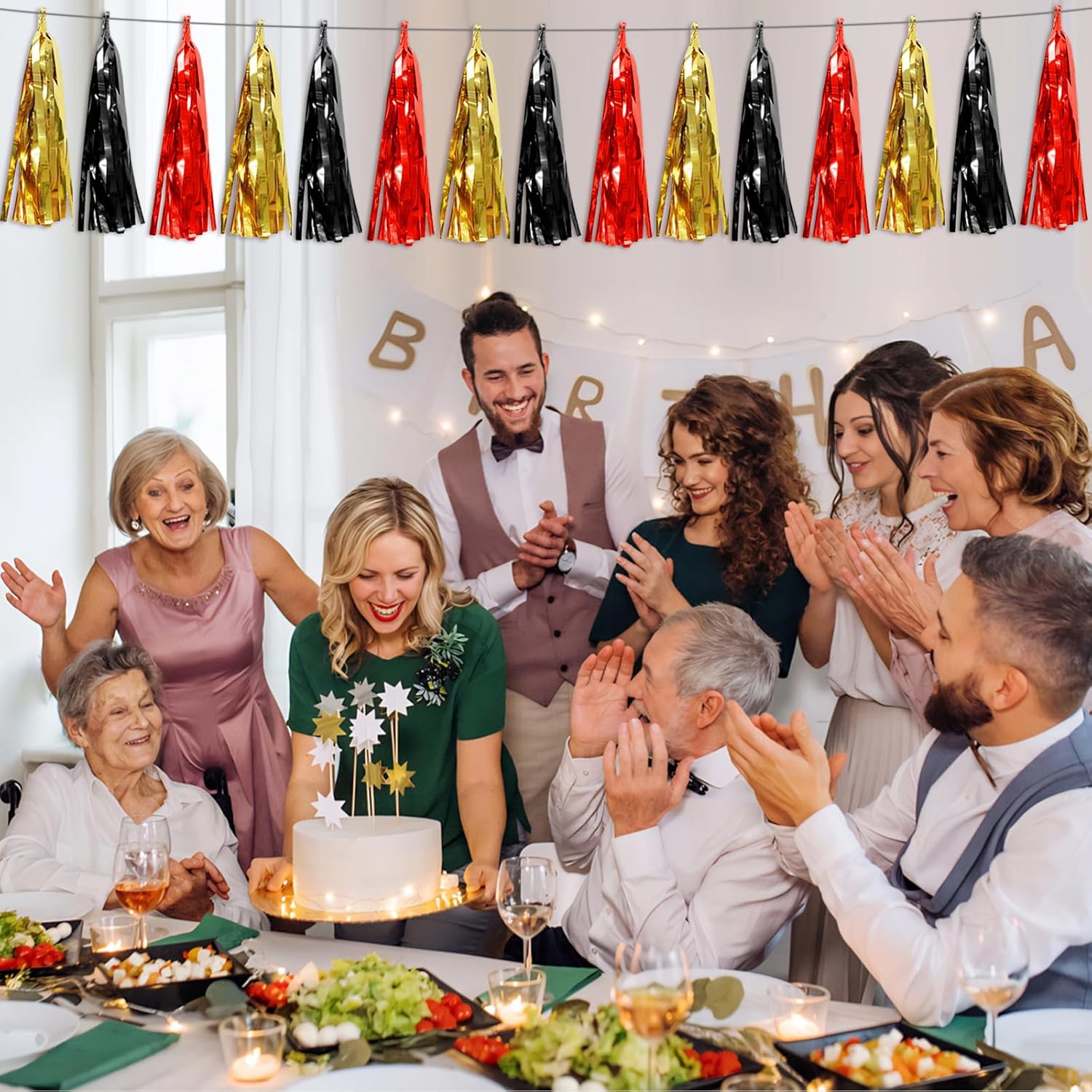 3P Black-Red Gold Foil Fringe Metallic Tassel Garland, Tassels Banner Streamers for Parade Floats, Bachelorette, Wedding, Birthday, Halloween, Christmas, Bridal/Baby Shower Party Decorations