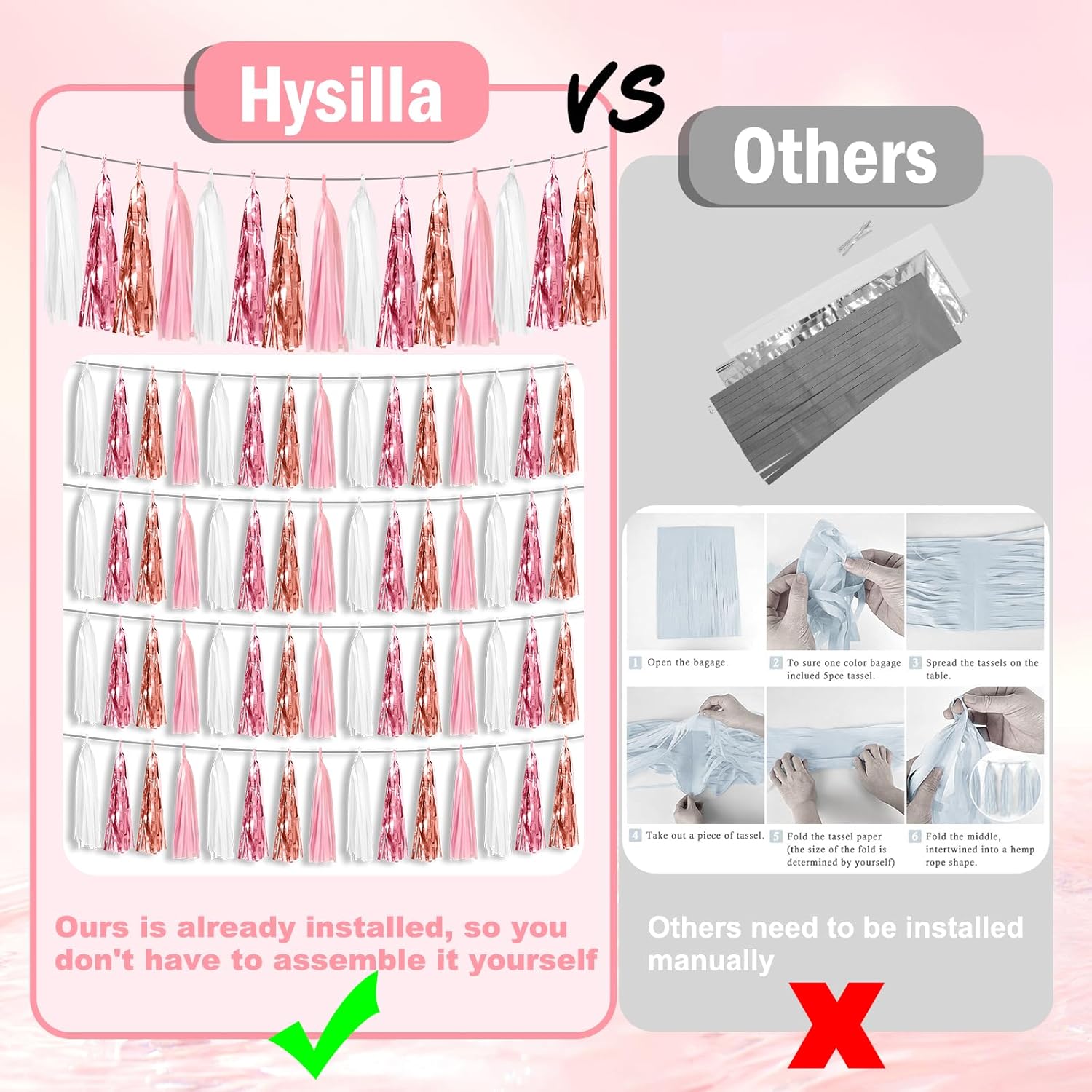 • 【Perfect Party Decoration】The pink white peach rose gold tinsel garlands are designed in a metallic Fringe, bright, and beautiful, at the same time, they shine in the sun, and these gorgeous tassel garlands create a wonderful backdrop or centerpiece for your party space. and bring you, your family, and your friend's good Visual effects. your party many emotional and touching moments where a lot of pictures will be taken and everybody will have a wonderful time together.