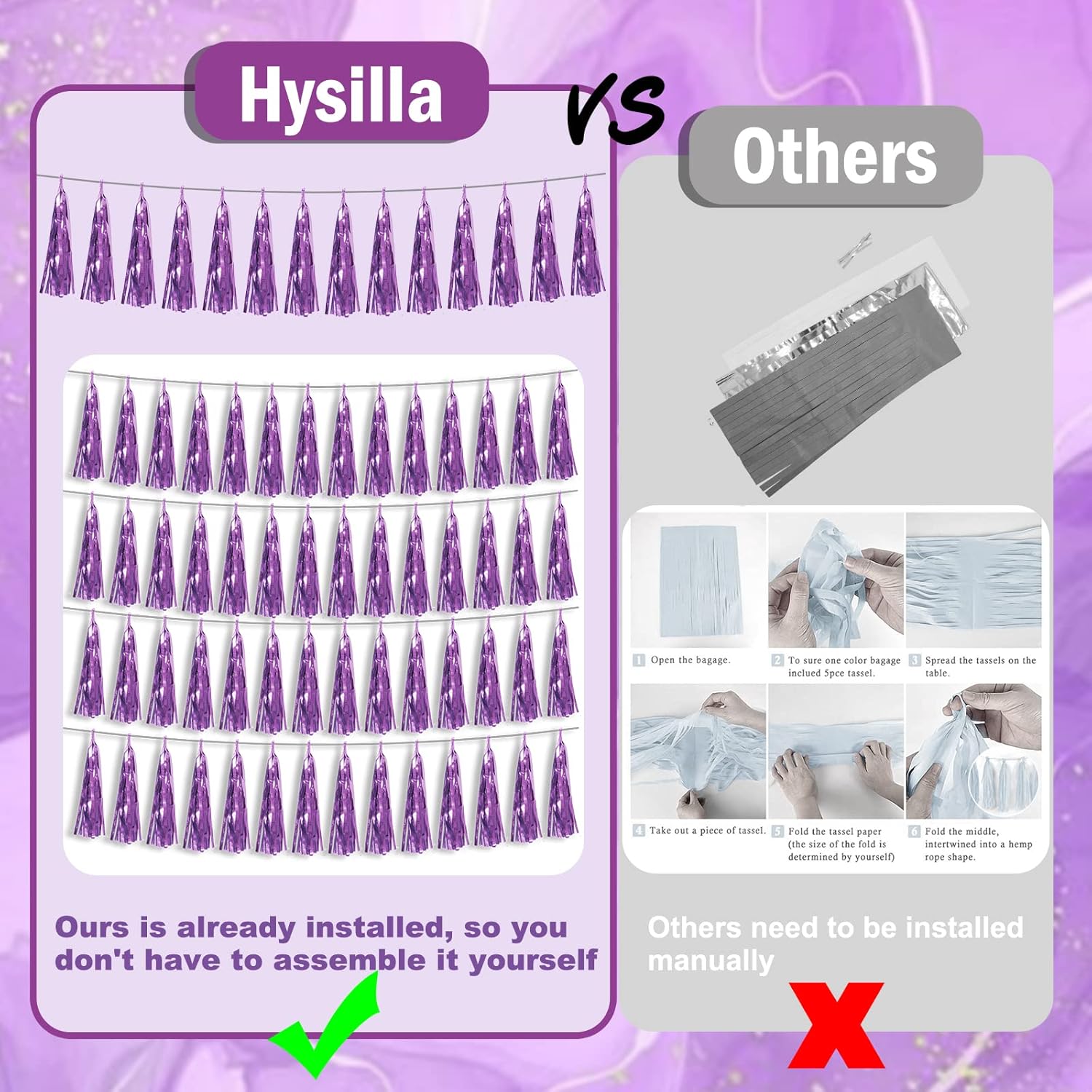 • 【Perfect Party Decoration】The light purple tinsel garlands are designed in a metallic Fringe, bright, and beautiful, at the same time, they shine in the sun, and these gorgeous tassel garlands create a wonderful backdrop or centerpiece for your party space. and bring you, your family, and your friend's good Visual effects. your party many emotional and touching moments where a lot of pictures will be taken and everybody will have a wonderful time together.