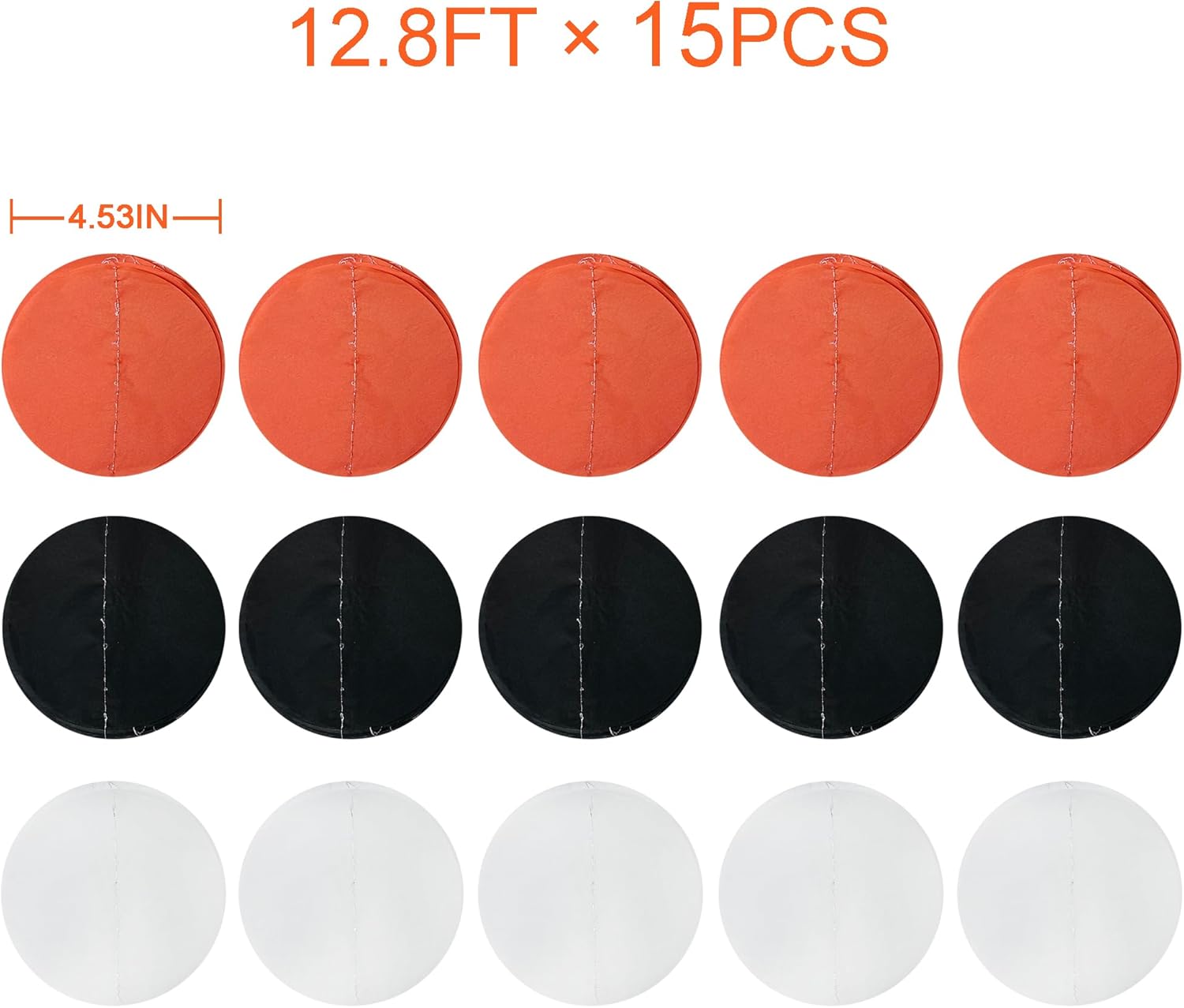 • ⚫PACKAGE CONTAINS- 15 packs of orange black and white circle dot party streamer banner,each string is 12.8 feet/3.9 meters with 30 pcs polka dots, Total is 58.5 meters/192 feet.