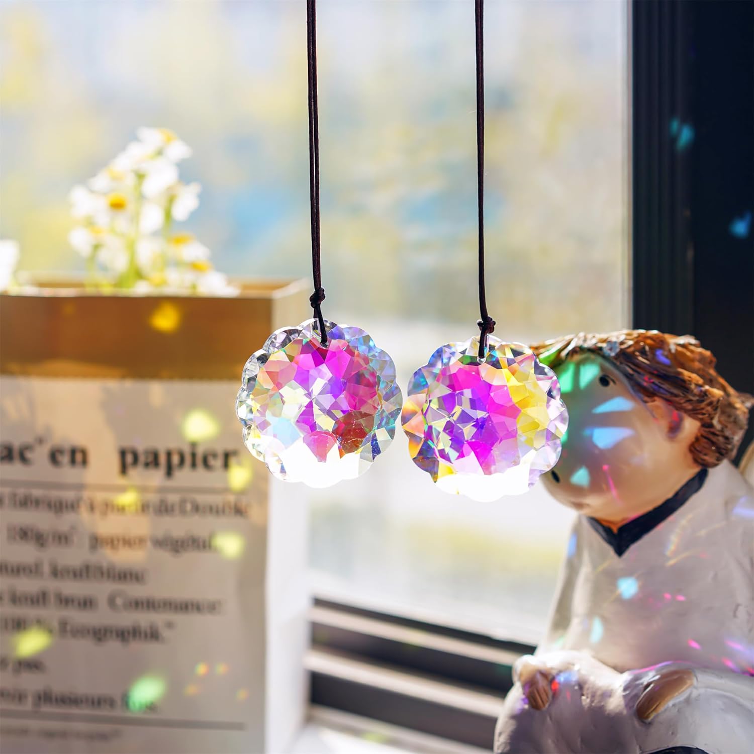 HDCRYSTALGIFTS Set 2 AB Color Crystal Suncatcher Datura Shaped Pendant Rainbow Feng Shui Hanging Prism (45mm)