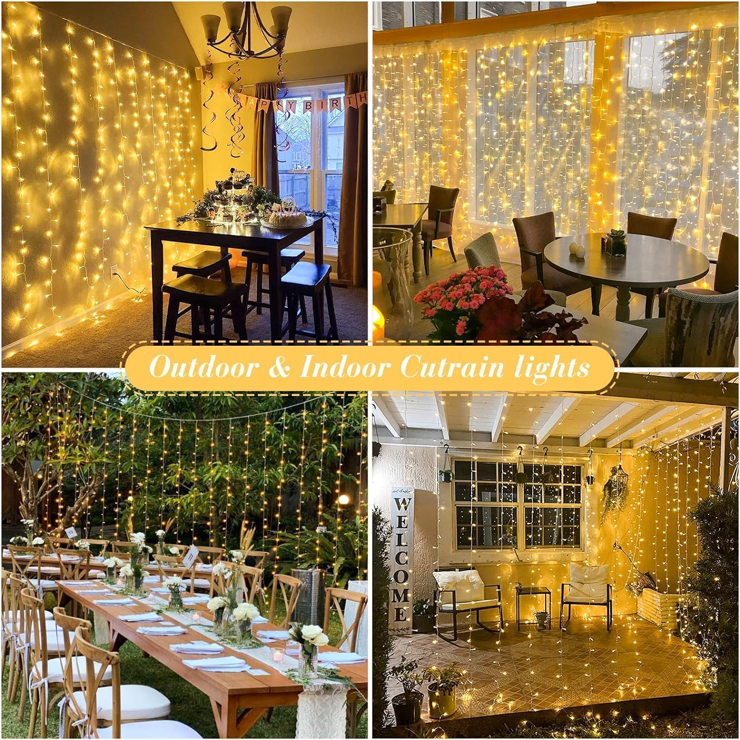 • CRAFTING WARM AMBIANCE: Light up your indoor-outdoor Christmas decor with our cozy Christmas lights, adding a festive glow to your space. Create a dreamy ambiance, turning your room into a warm Christmas wonderland. Christmas curtain lights are a perfect backdrop for celebrating and sharing precious moments with family. Experience the magical blend of light and warmth this particular season!