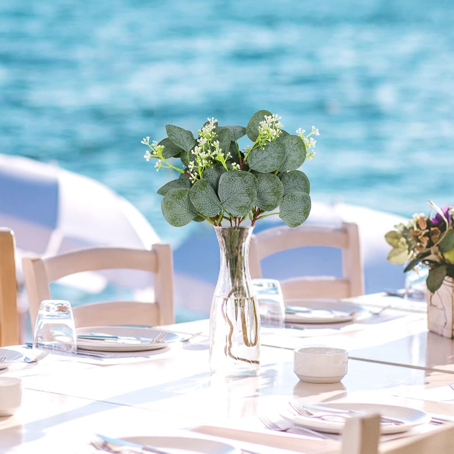 • ☘These realistic artificial eucalyptus leaf stems will be the perfect complement for wedding bouquets, wedding center decorations, eucalyptus wreaths, wedding floral decorations, floral decorations, room decorations or display on fireplaces, dining tables, coffee tables, bedside tables, shelves and office tables. They are a year-round decorative artificial greenery that can illuminate your surroundings