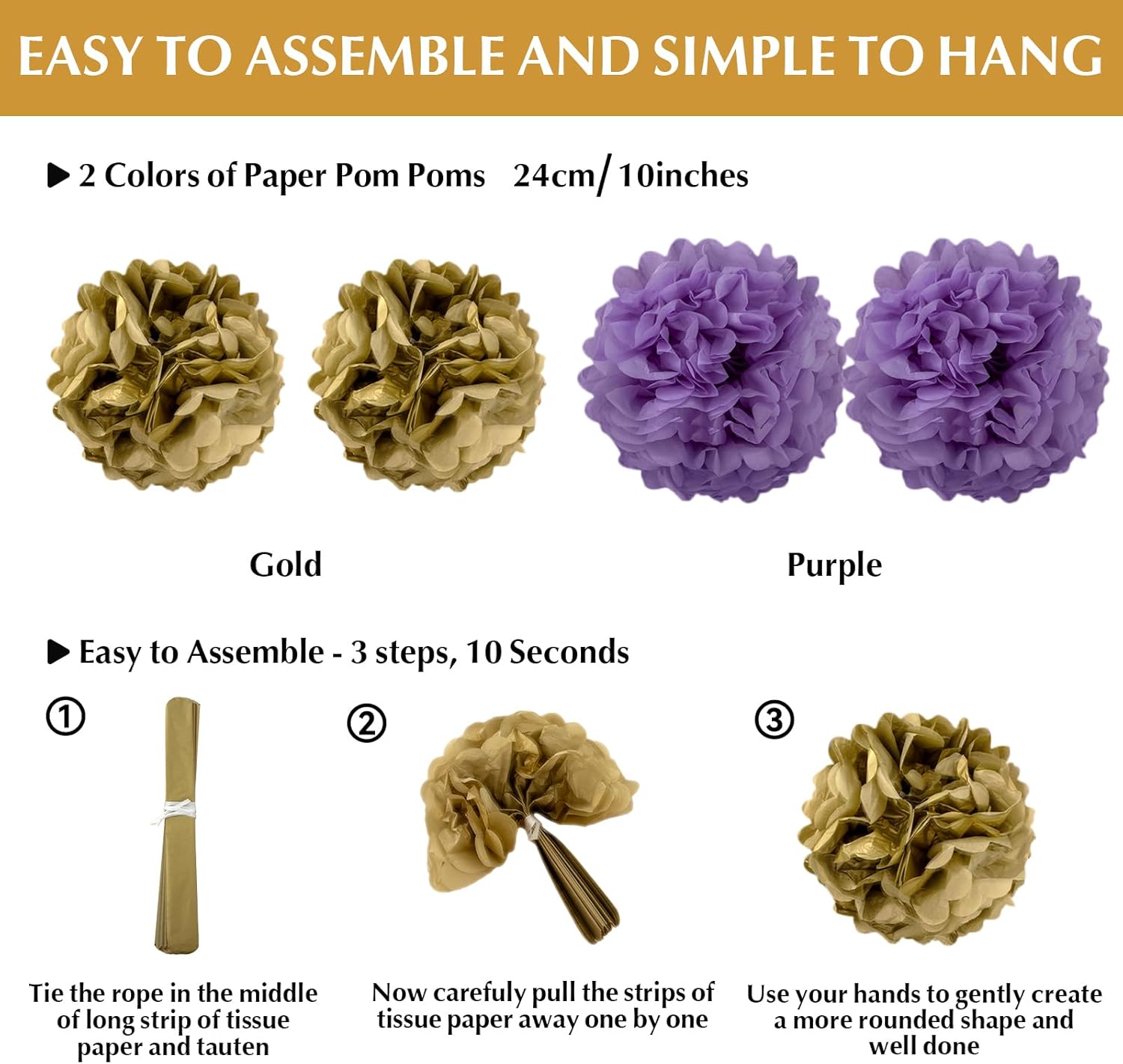 • 24PCS —You'll get 6pcs paper fans, 4pcs paper hollow fans, 4pcs honeycomb Balls, 4pcs paper pom poms, 2pcs dots garlands, 1pcs pennant banner,1pcs HAPPY BIRTHDAY banner and 2 rolls of ribbon, 24pcs in total. Help you effortlessly create a beautifully unique party for your occasion.