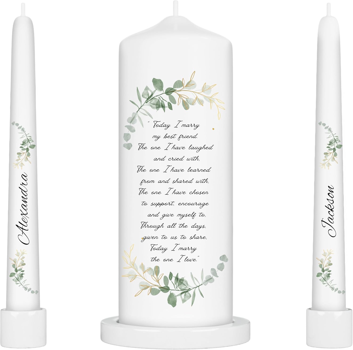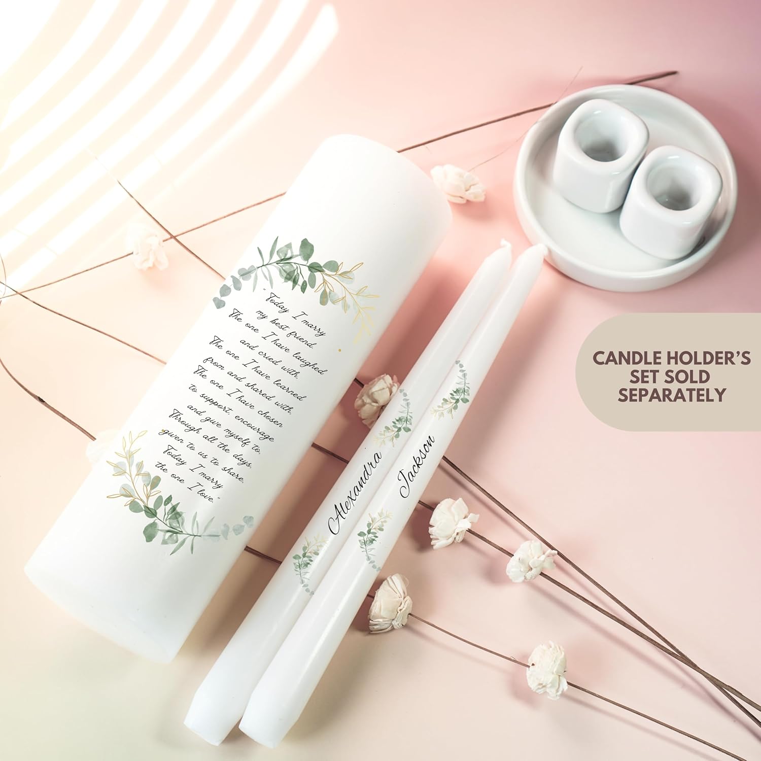 Unity Candles for Wedding, Modern Unity Set, Custom and Personalized Taper Candles with Bible Quote, Unscented White Premium Wax, Religious and Wedding Ceremony, Special Events (Custom Names)