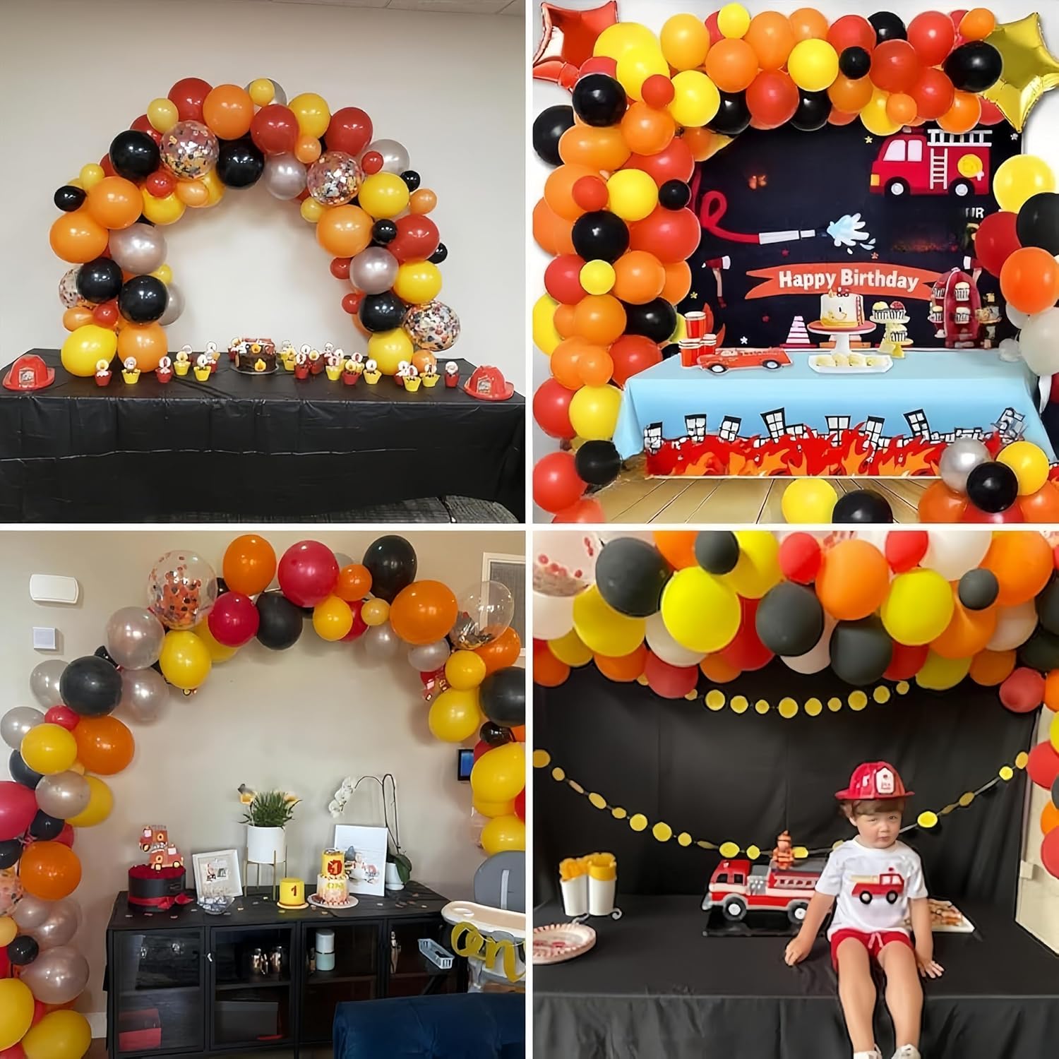 Orange Red Yellow Black Balloons, 12 Inch Colorful Latex Balloons with Black Yellow Confetti Balloon, for Race Car Construction Birthday Baby Shower Carnival Party Decorations