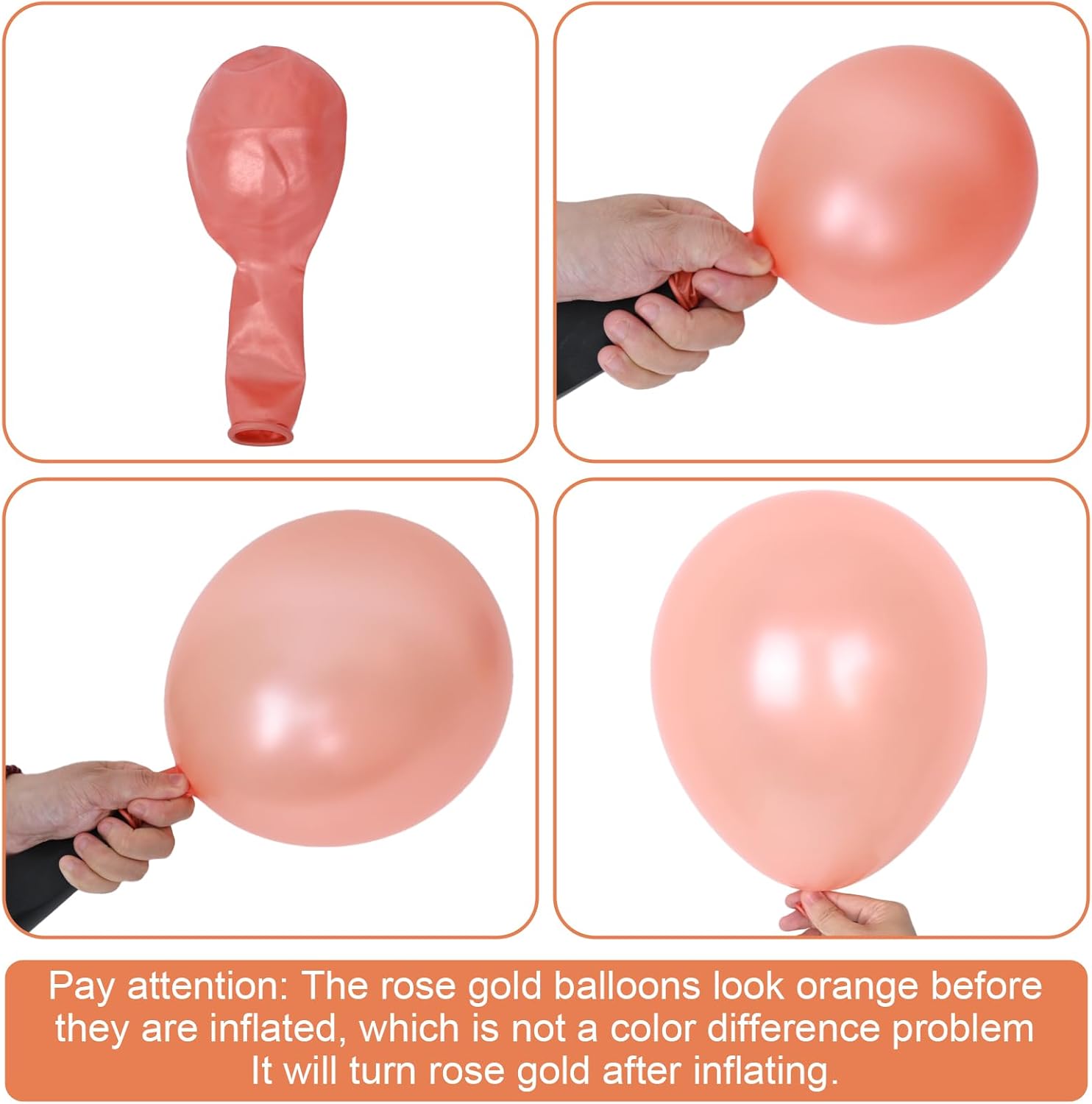 • Rose Gold Balloon Sets: 6 x metal rose gold balloons, 6 x preal rose gold balloons, 6 x pearl champagne gold balloons, 6 x pearl white balloons, 6 x clear balloons with rosegold confetti. That's a magnificent total of 30 pieces to unleash your creativity! Elevate your celebrations with our exquisite rose gold balloon sets!